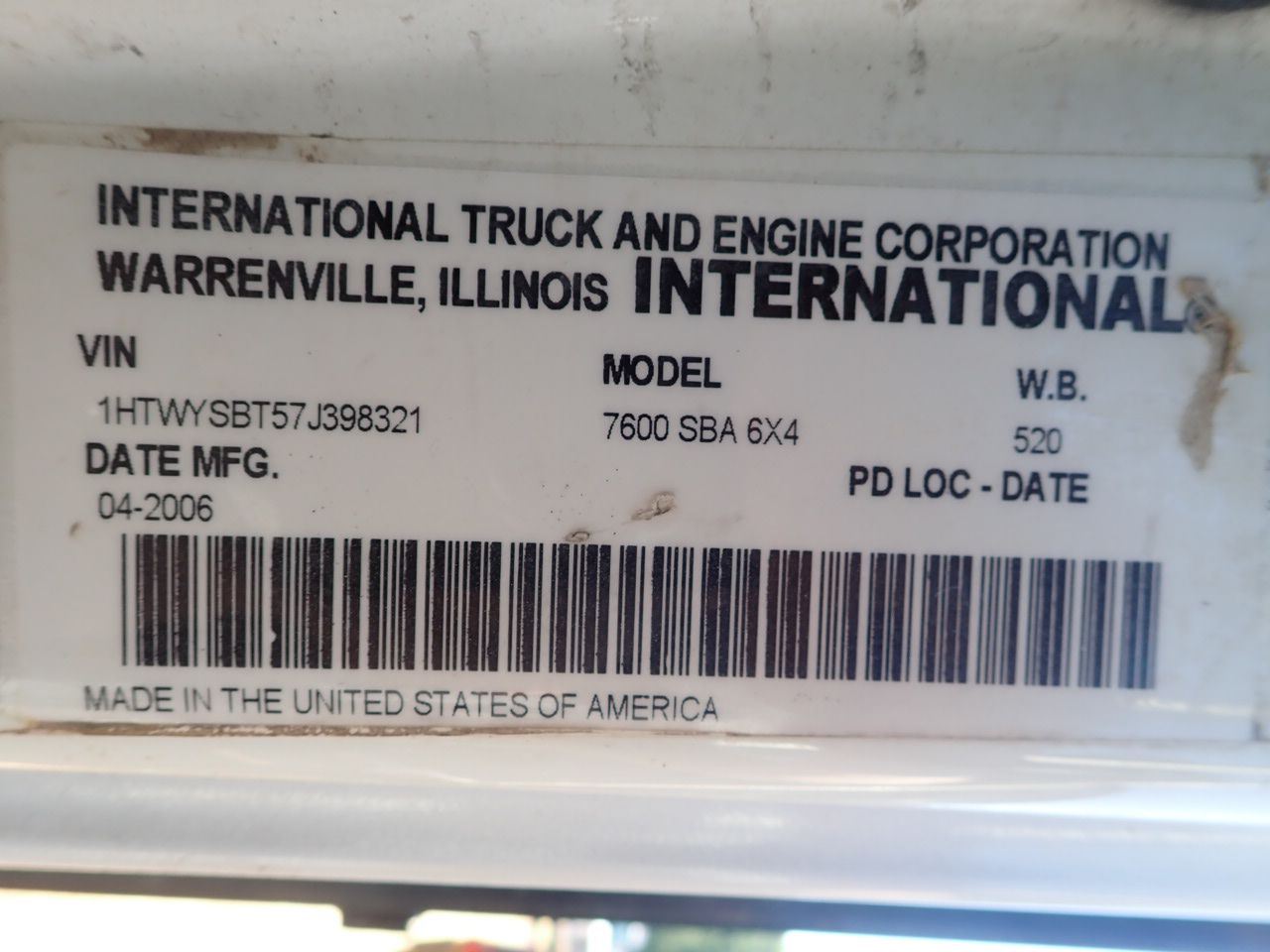 Vehicle ID Number: 1HTWYSBT57J398321