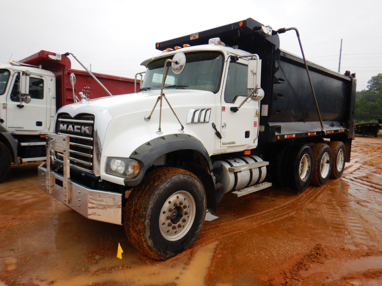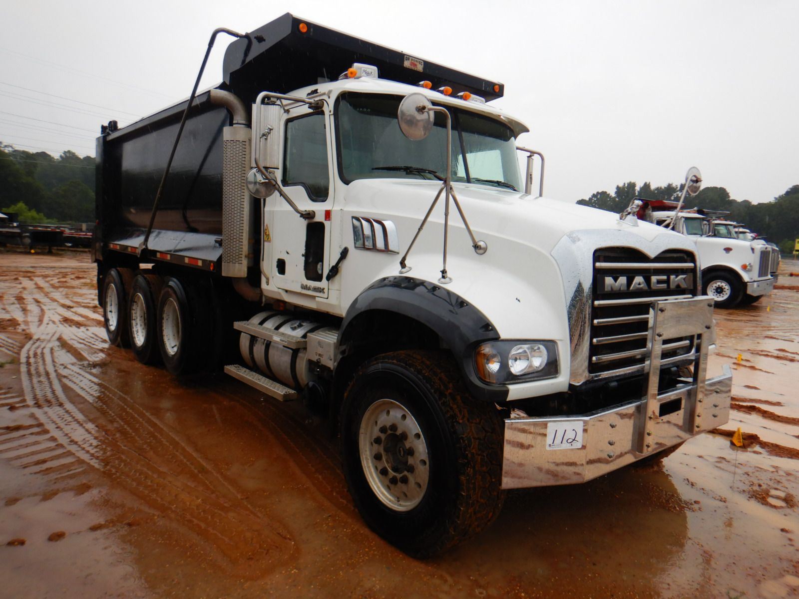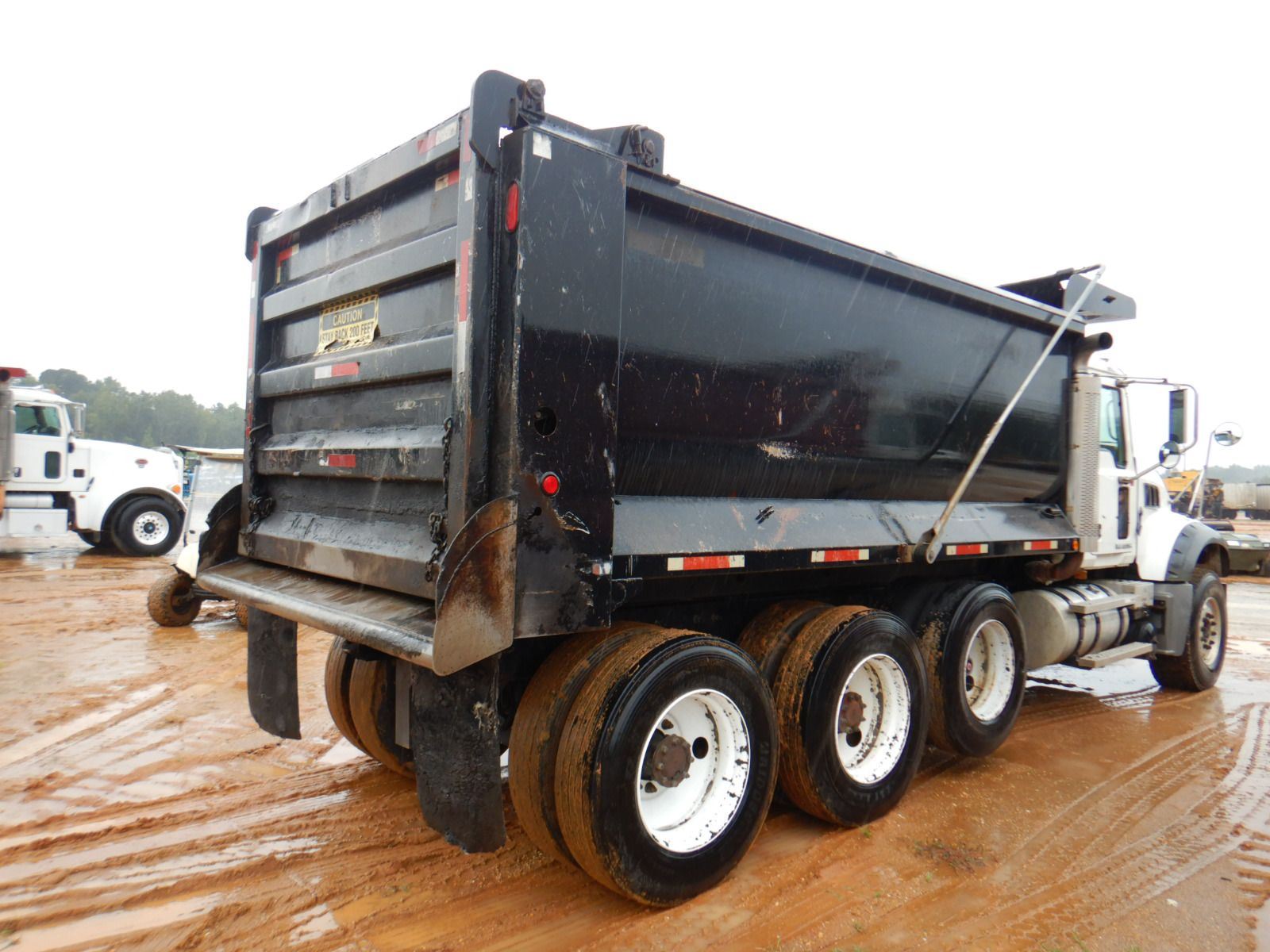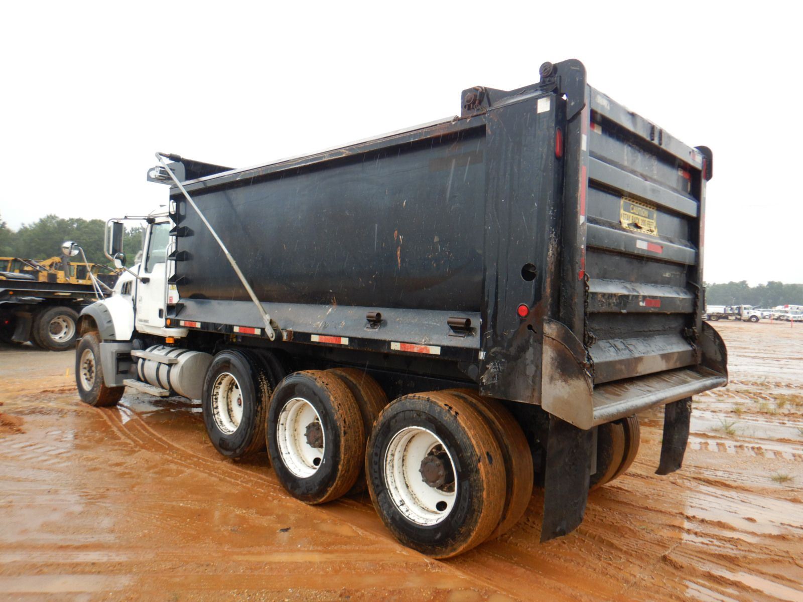 Tri Axle, 405 HP Mack MP7 engine, 10 speed trans, 44K rears, 18K front, 16' Hard Ox body, 11R24.5 rear tires, 385/65R22.5 front tires