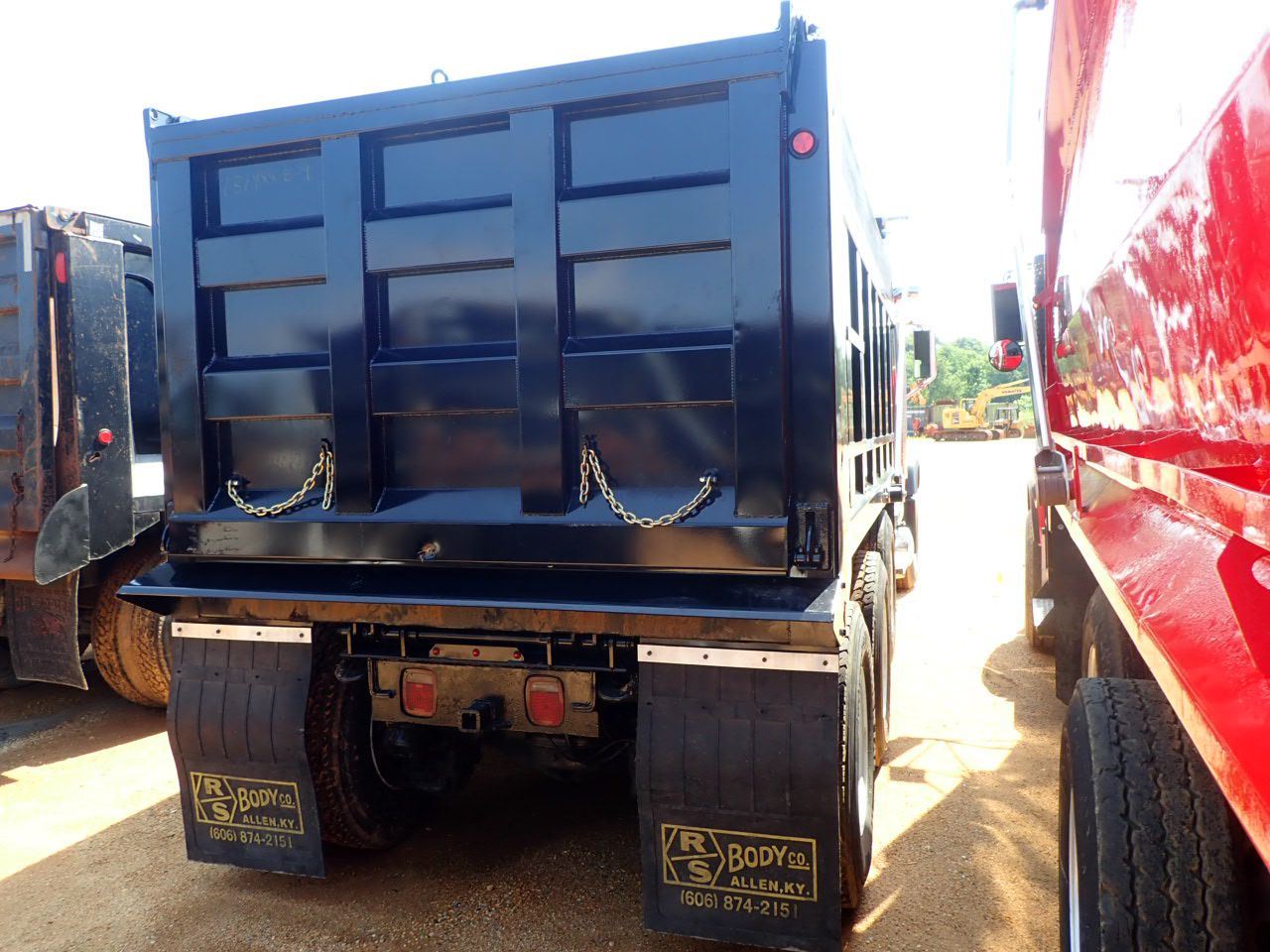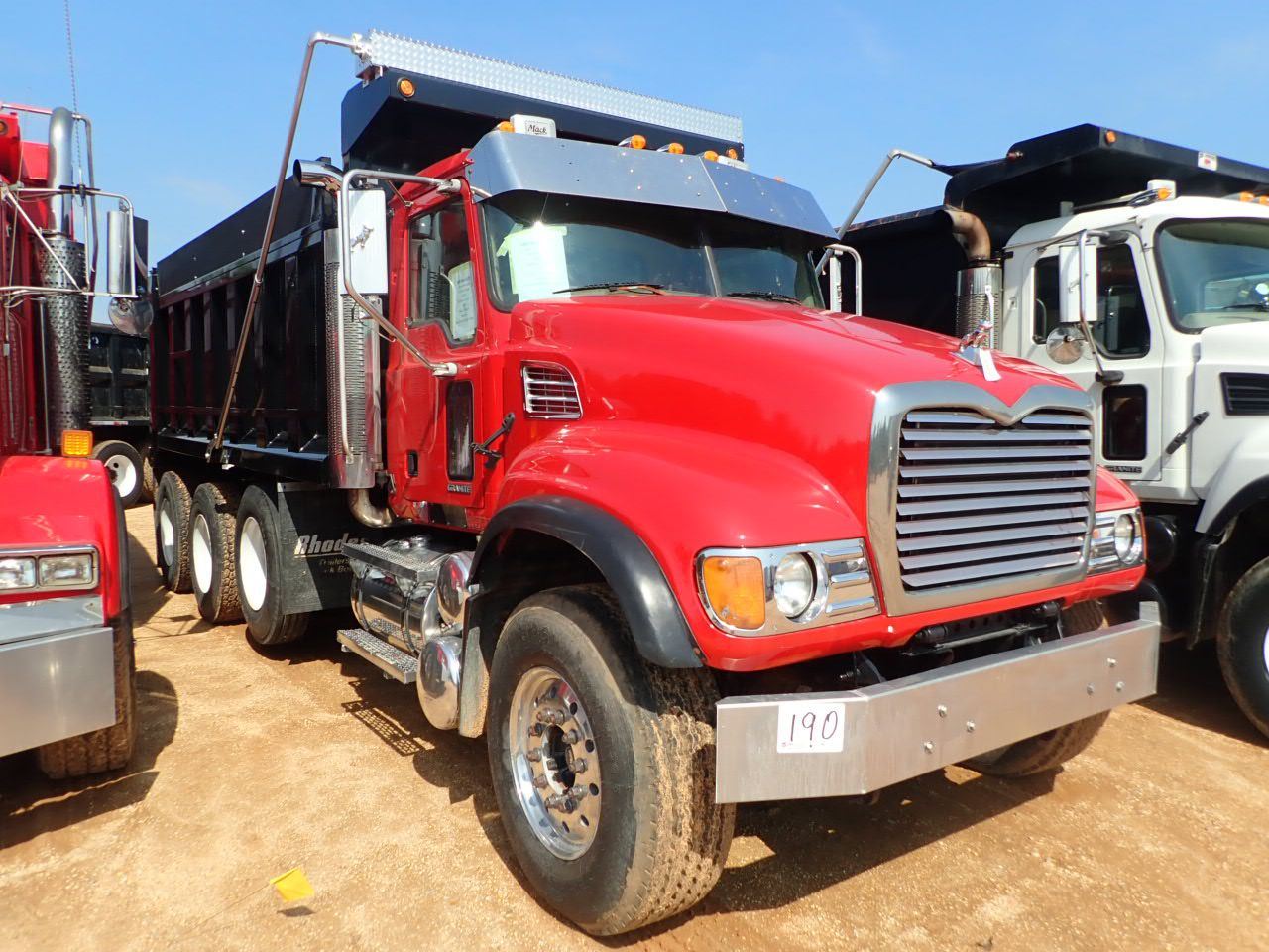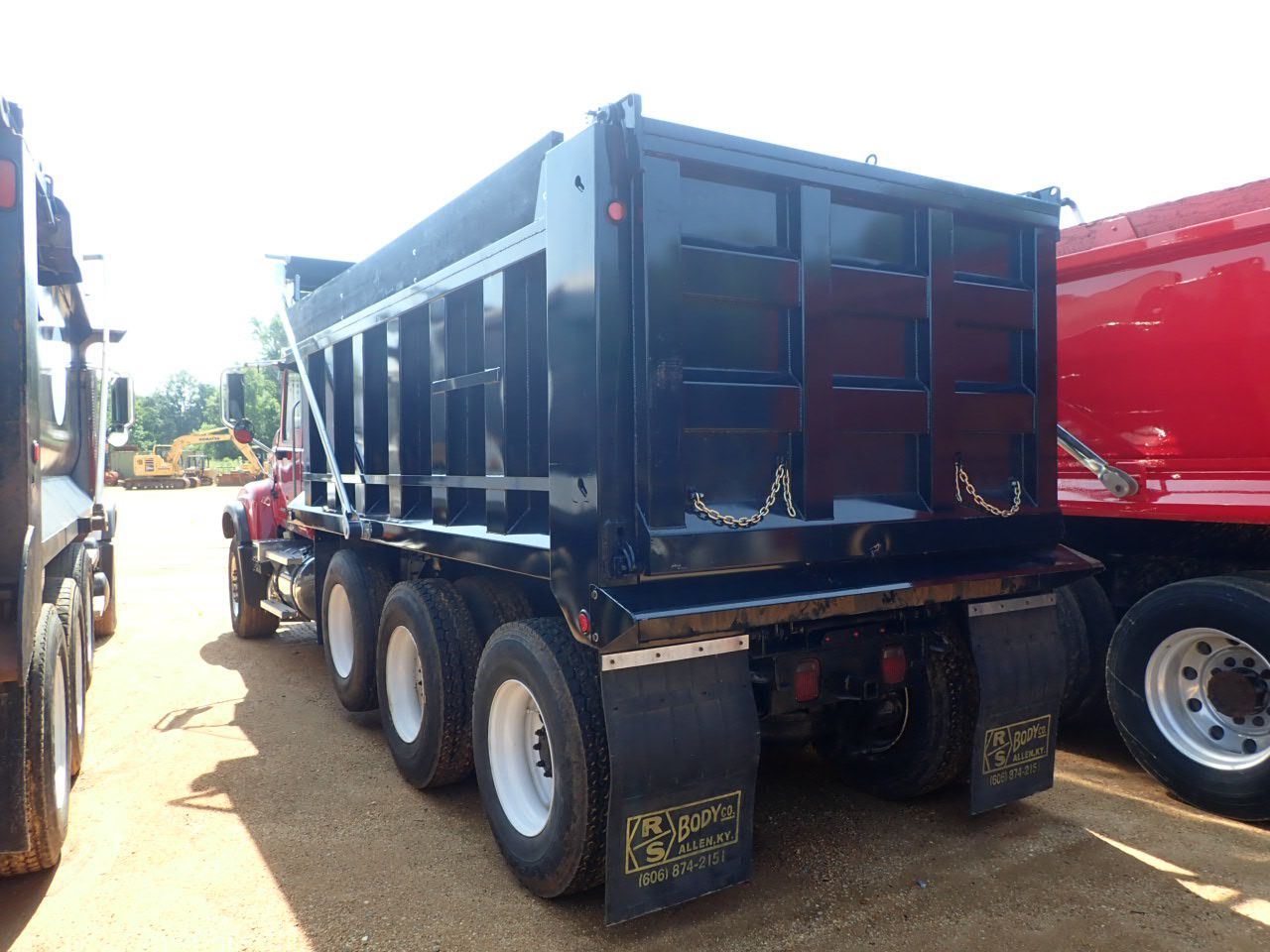 Tri axle, 427 HP Mack engine, New Reman 8LL Trans, New clutch, 44K rears, 18K front, 20K air lift axle, DF, PS, AC, new 16' steel dump body, tarp, 11R22.5 rear tires, 385/65R22.5 front tires, disc wheels