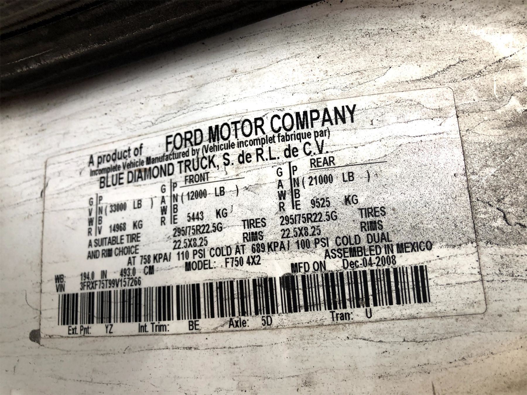 2009 FORD F750 Cab and Chassis Truck