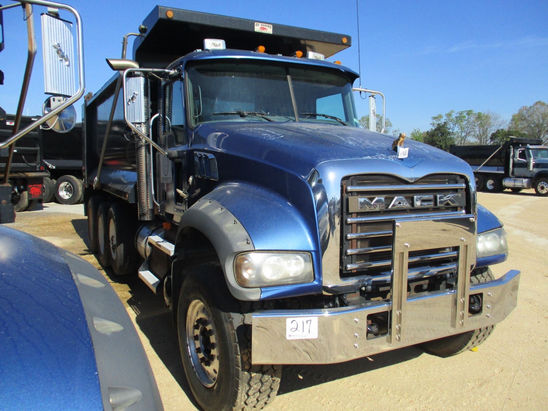 2009 MACK GU713 DUMP, VIN/SN:1M2AX09C09M007237 - MACK MP8-425M DIESEL ENGINE, MACK T310M 10 SPEED TRANS, 44K REARS, 18K FRONT, ENGINE BRAKE, 16' HARD OX BODY, HIGH LIFT TAILGATE, 11R24.5 REAR TIRES, 385/65R22.5 ALUM FRONT, ODOMETER READING 111,367 MILES (COUNTY OWNED)