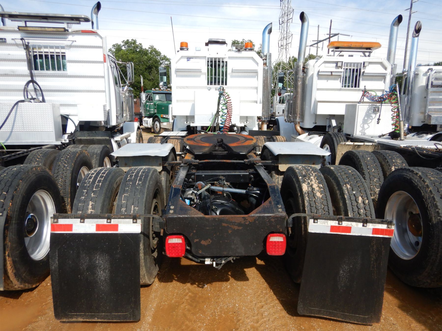 Tri Axle, 500 HP Cummins ISX 15 engine, 10 speed trans, 46K rears, air ride susp., 18,740K front, 242" w/b, wet kit, alum headache rack, 11R24.5 rear tires, 315/80R22.5 front tires, all alum
