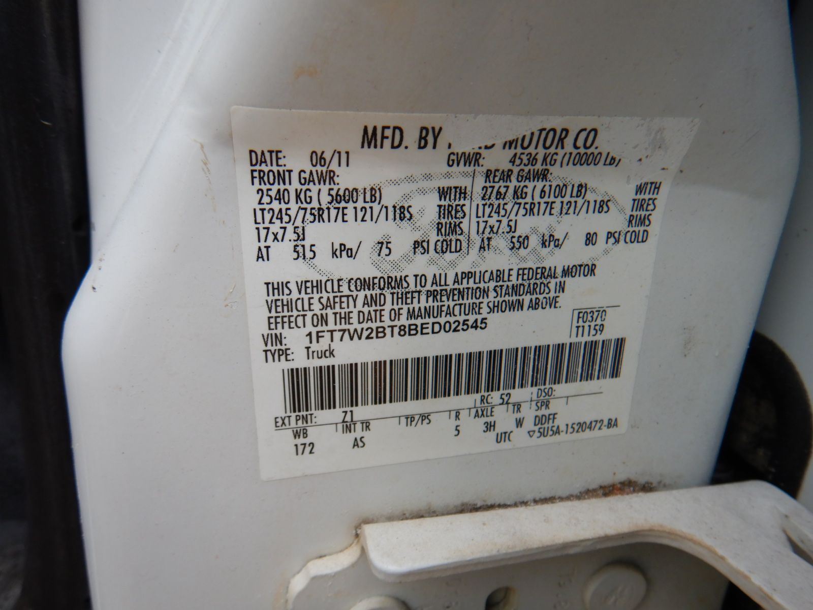 Vehicle ID Number: 1FT7W2BT8BED02545