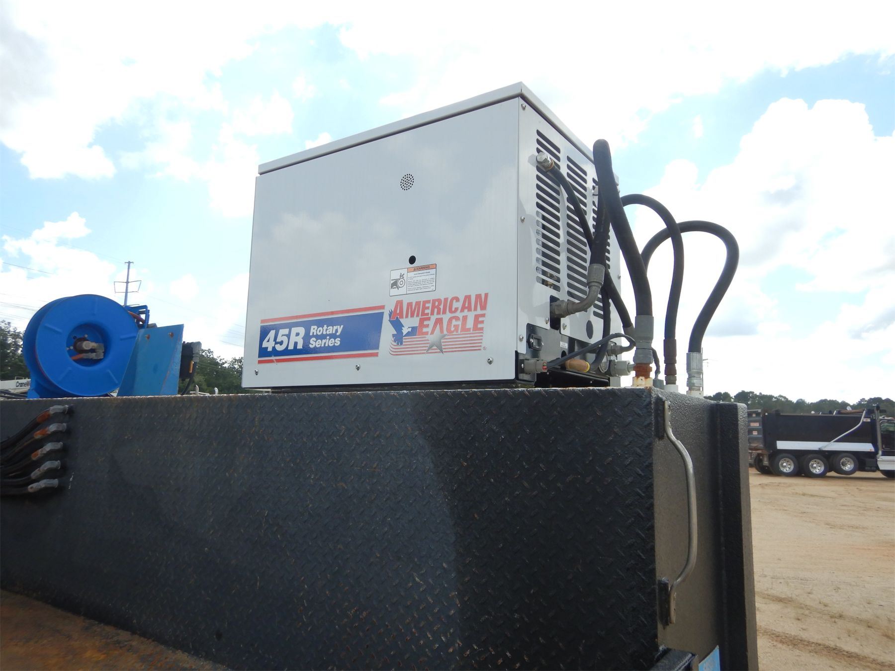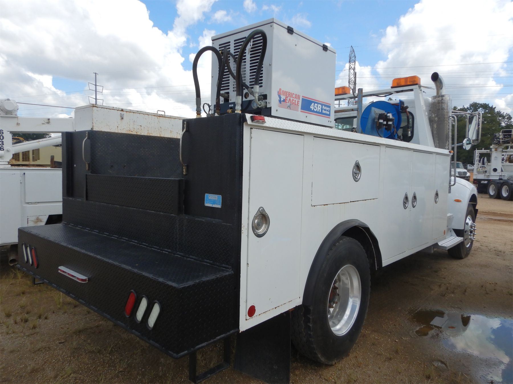 Paccar PX-8 engine, 10 speed trans, CaseCo Body, (6) Product Tanks, American Eagle 45R hyd air compressor, hose reels