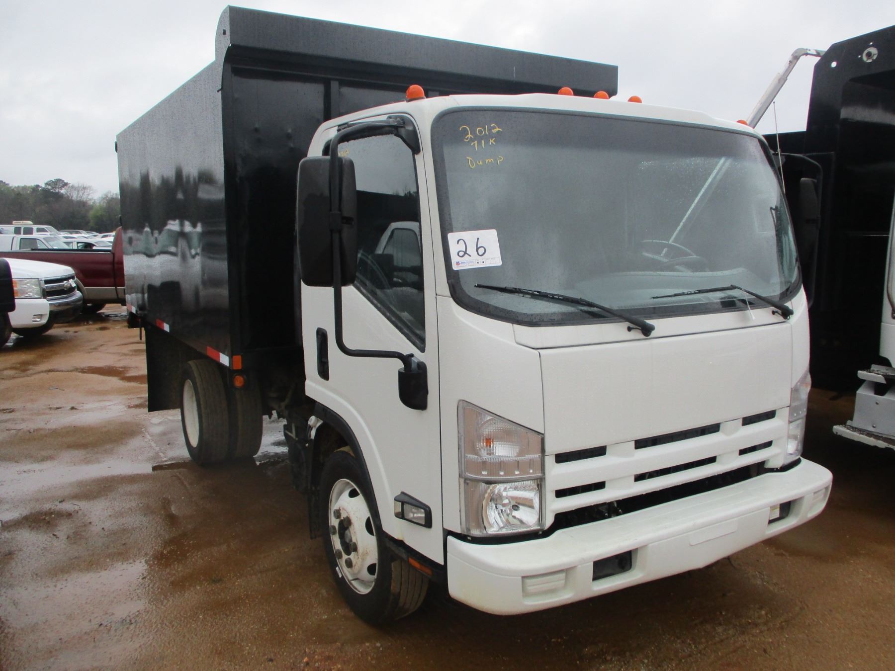 2012 ISUZU DUMP TRUCK, VIN/SN:54DC4W1B1CS804011 - S/A, GVWR, 14,500 LB, V8 GAS ENGINE, A/T, 12' DUMP BODY WITH BARN DOORS, ODOMETER READING 72,189 MILES