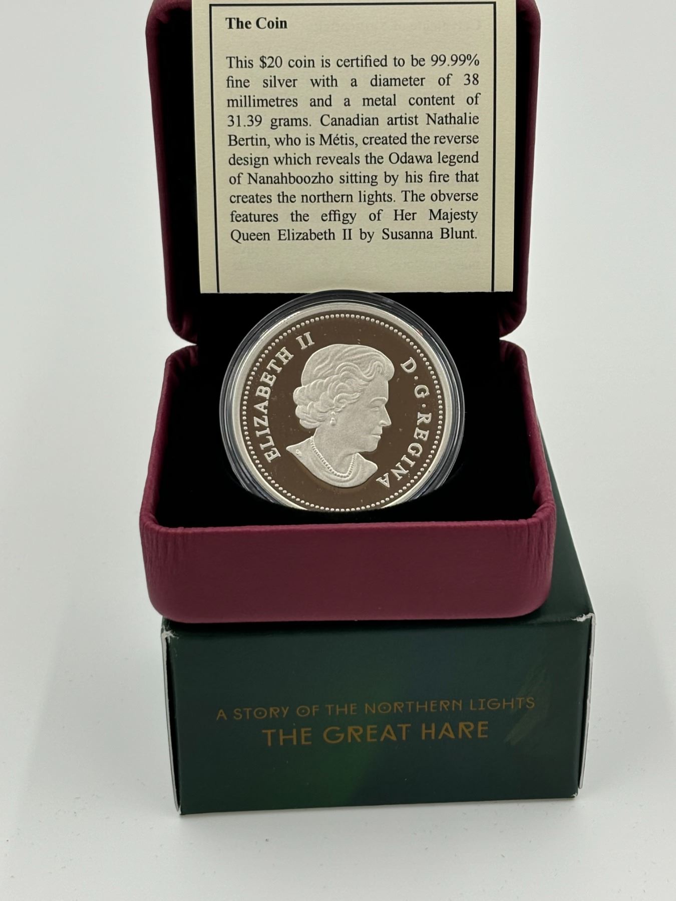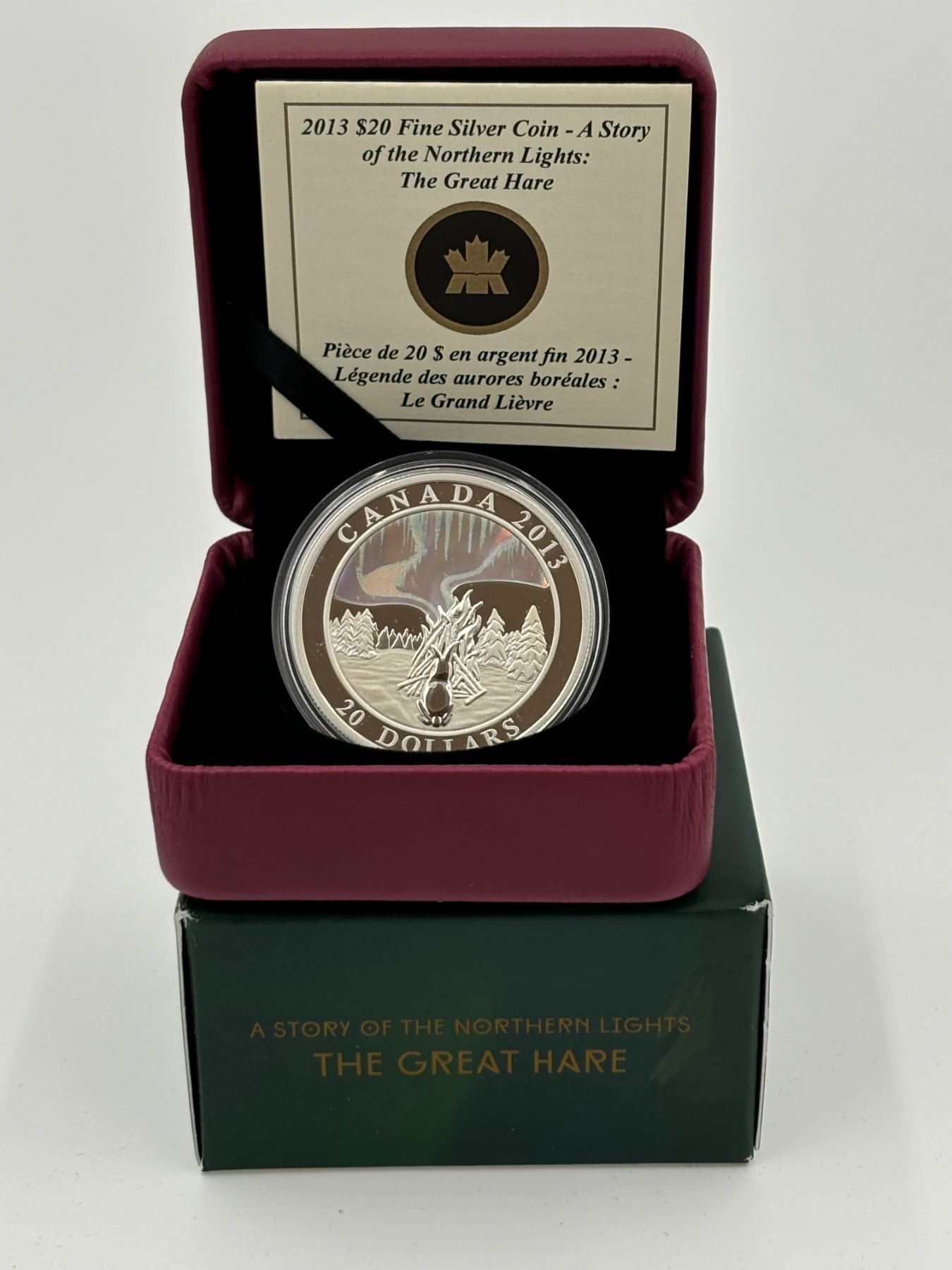 2013 $20 Fine Silver Coin. A Sory of the Northern Lights. The Graet Hare (tax exempt)