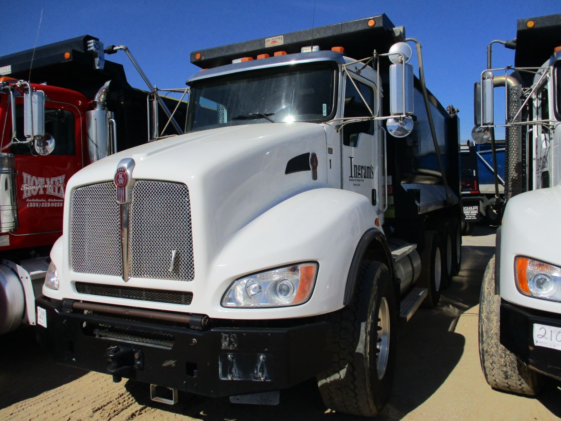 2013 KENWORTH T440 DUMP, VIN/SN:1NKBX57X1DJ352416 - TRI-AXLE, 370 HP CUMMINS ISL9 ENGINE, ALLISON 4500 RDS A/T, 46K REARS, 18,740# FRONT, FULL LOCKERS, ENGINE BRAKE, 16' HARD OX BODY, HIGH LIFT GATE, 11R24.5 TIRES, 425/6522.5 FRONT TIRES, ALUM FRONT, ODOMETER READING 198,735 MILES Page 18 Lot Num. Description