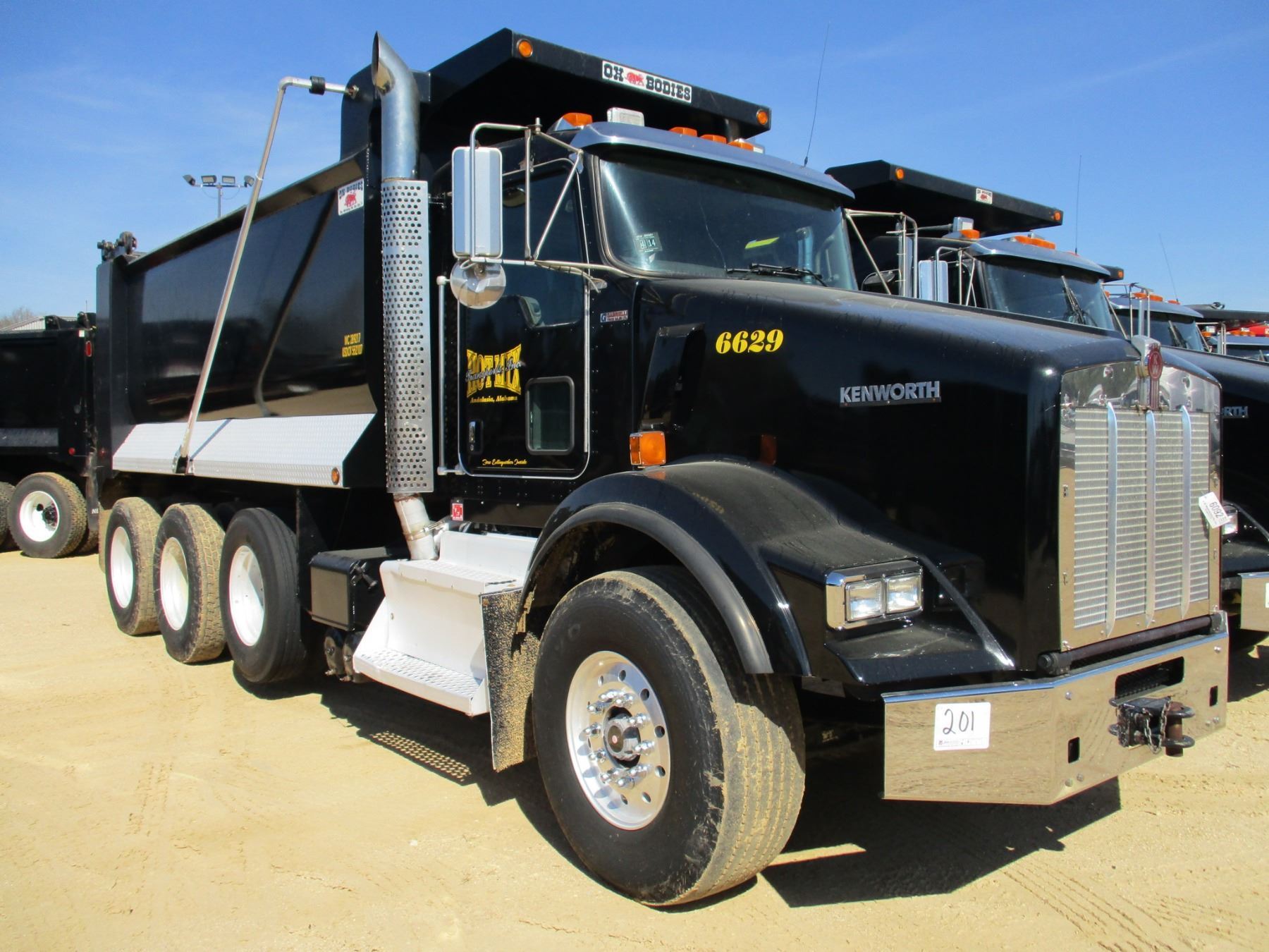 2013 KENWORTH T800 DUMP, VIN/SN:1NKDX4TX3DT355708 - TRI-AXLE, 455 HP PACCAR MX-13 ENGINE, 8LL TRANS, 46K REARS, 18,740# FRONT, FULL LOCKERS, ENGINE BRAKE, 16' HARD OX BODY, 11R24.5 REAR TIRES, 425/65R22.5 FRONT TIRES, ALL ALUM, ODOMETER READING 107,384 MILES (REBUILT TITLE)