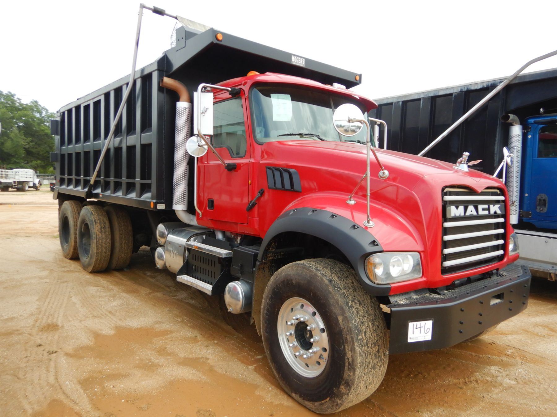T/A, 405 HP Mack MP7 engine, Allison A/T, 65K rears, 18,460lb. front, 18' Rogers dump body, 12.00R24.5 rear tires, 425/65R22.5 front tires, alum front