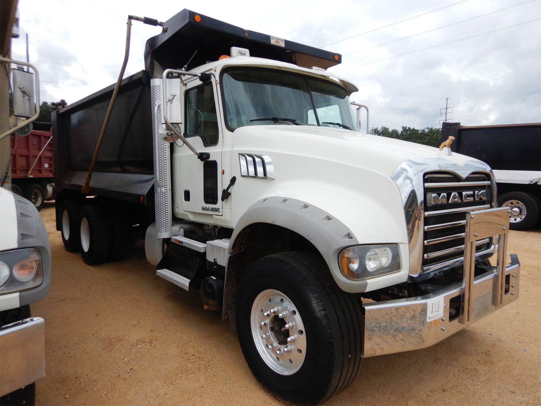 T/A, 405 HP Mack MP7 engine, 10 speed trans, 44K rears, 18K front, 16' Hard Ox body, 11R22.5 rear tires, 385/65R22.5 front tires, alum front