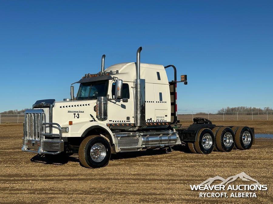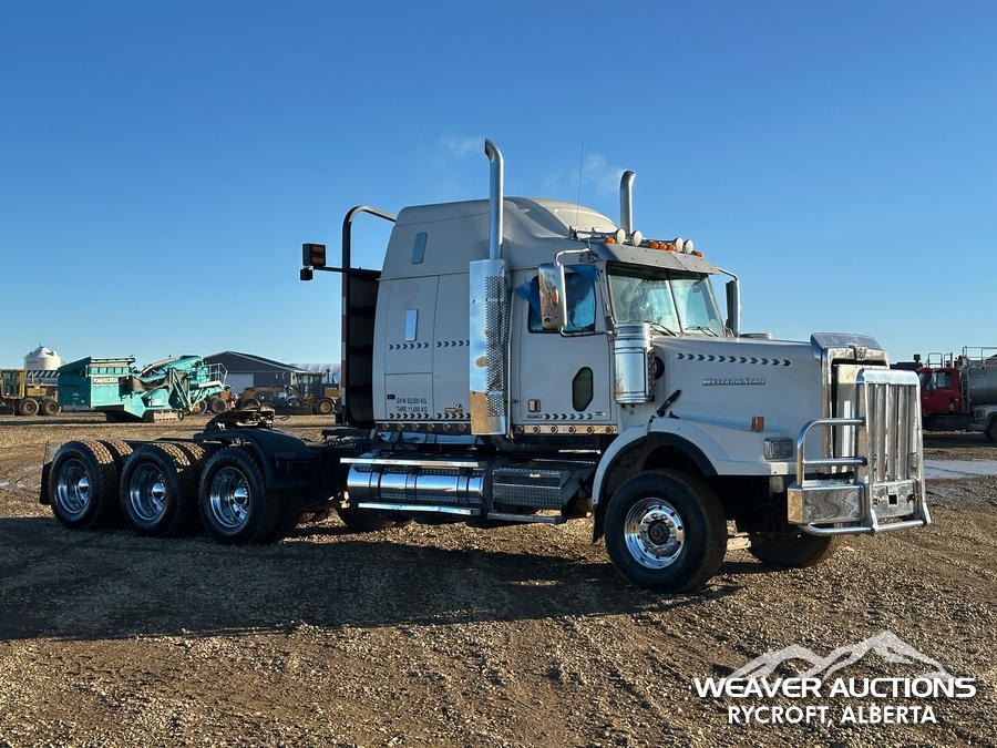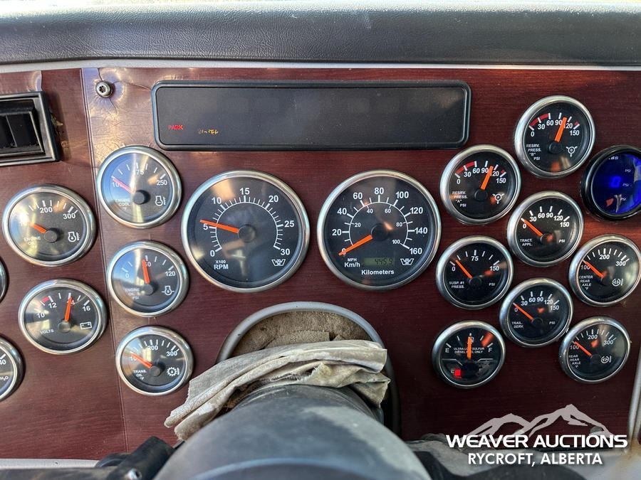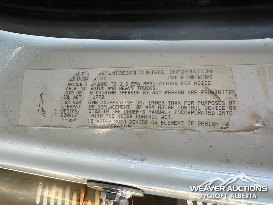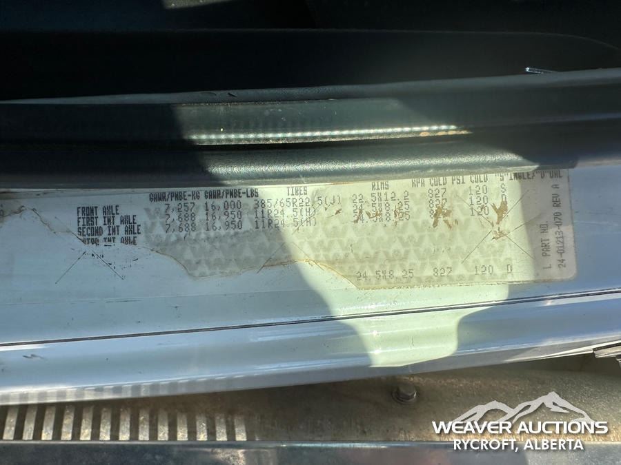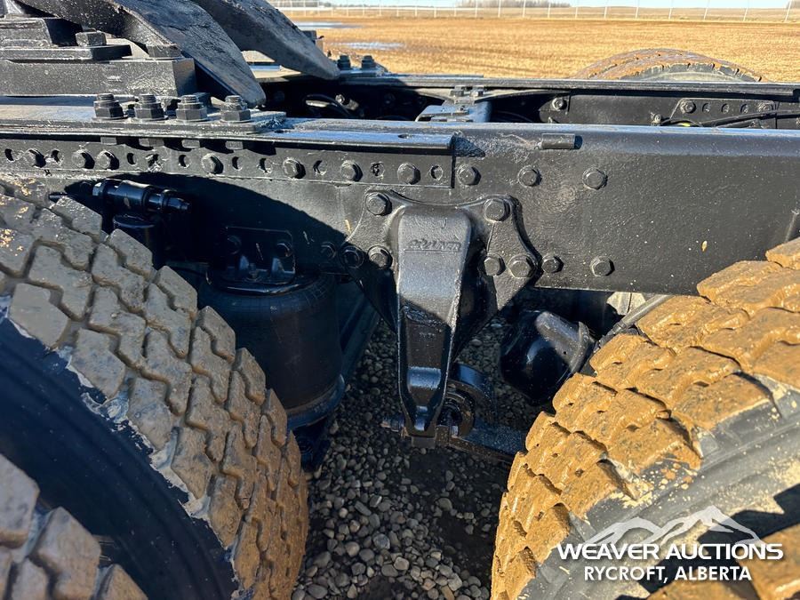 Specifications: ENGINE BRAKE, EATON FULLER RTL016918B 18-SPEED MANUAL TRANSMISSION, TRIPLE DIFFERENTIAL LOCKS, 20,000 LB FRONT AXLE, RZ1-166 REARS, 4.10 RATIO, AIR RIDE CAB, 268 IN. WHEELBASE, ALUMINUM WHEELS, 11R24.5, AIR RIDE SUSPENSION, PIN ON 5TH WHEEL