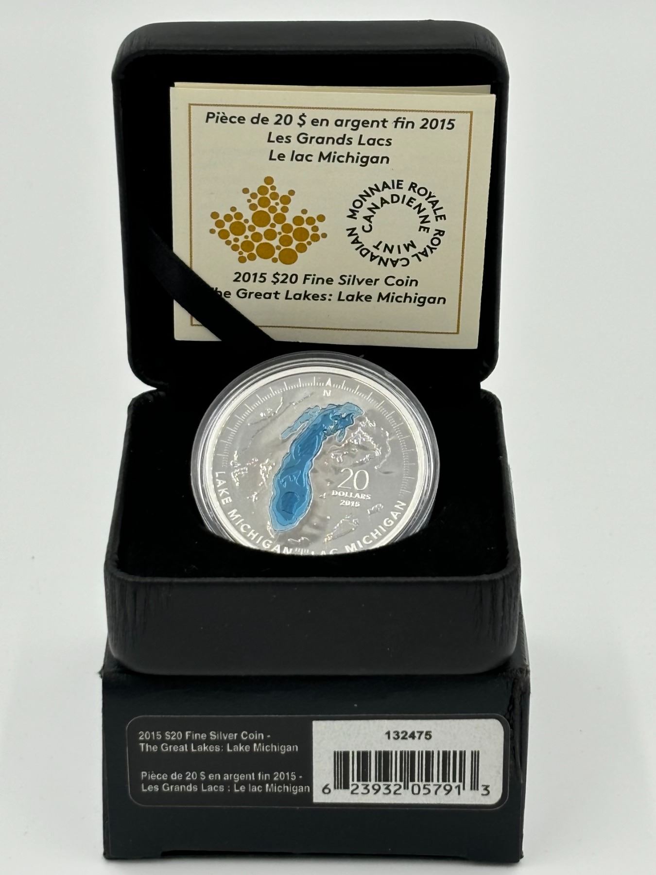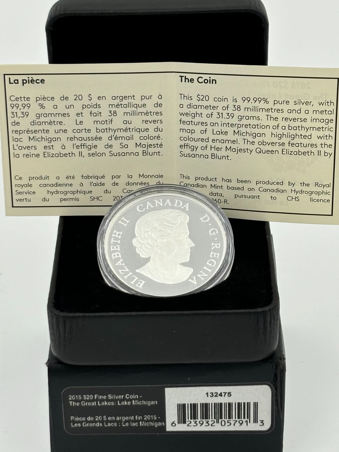 2014 $20 Fine Silver Coin. The Great Lakes - Lake Eerie (tax exempt) Outer box rough