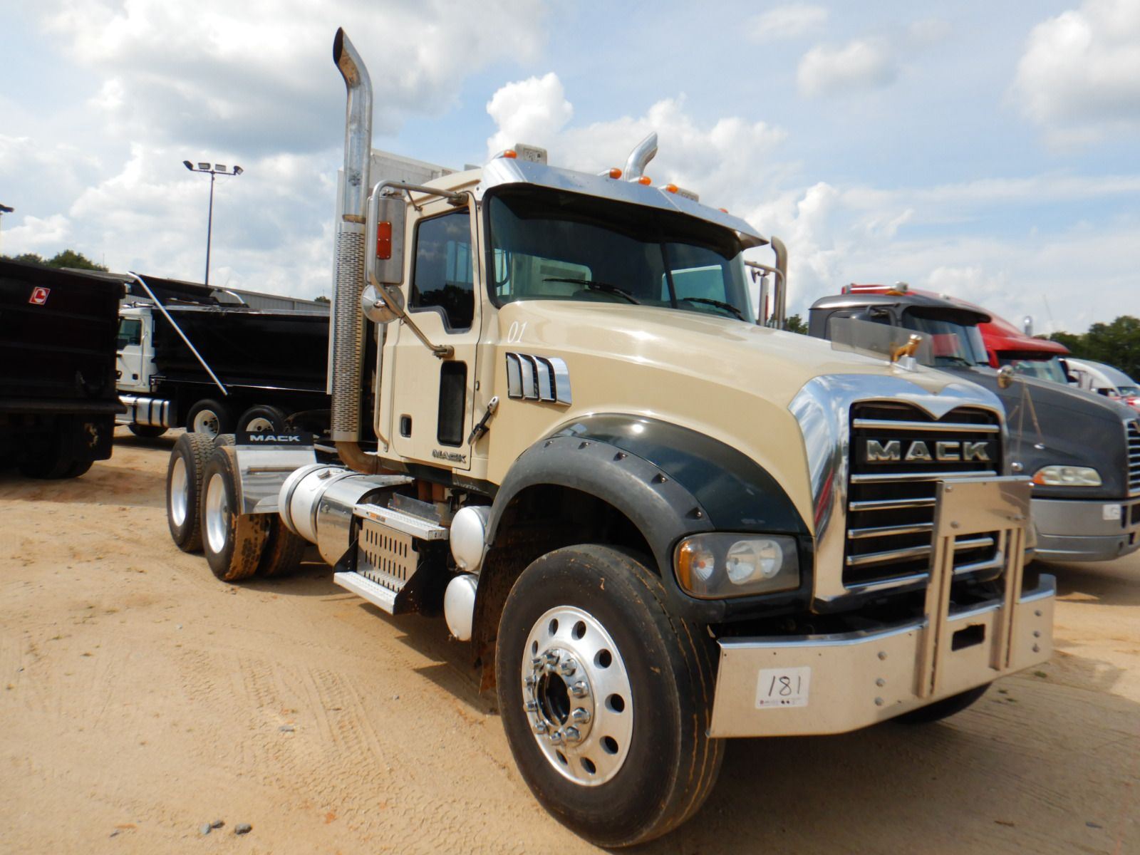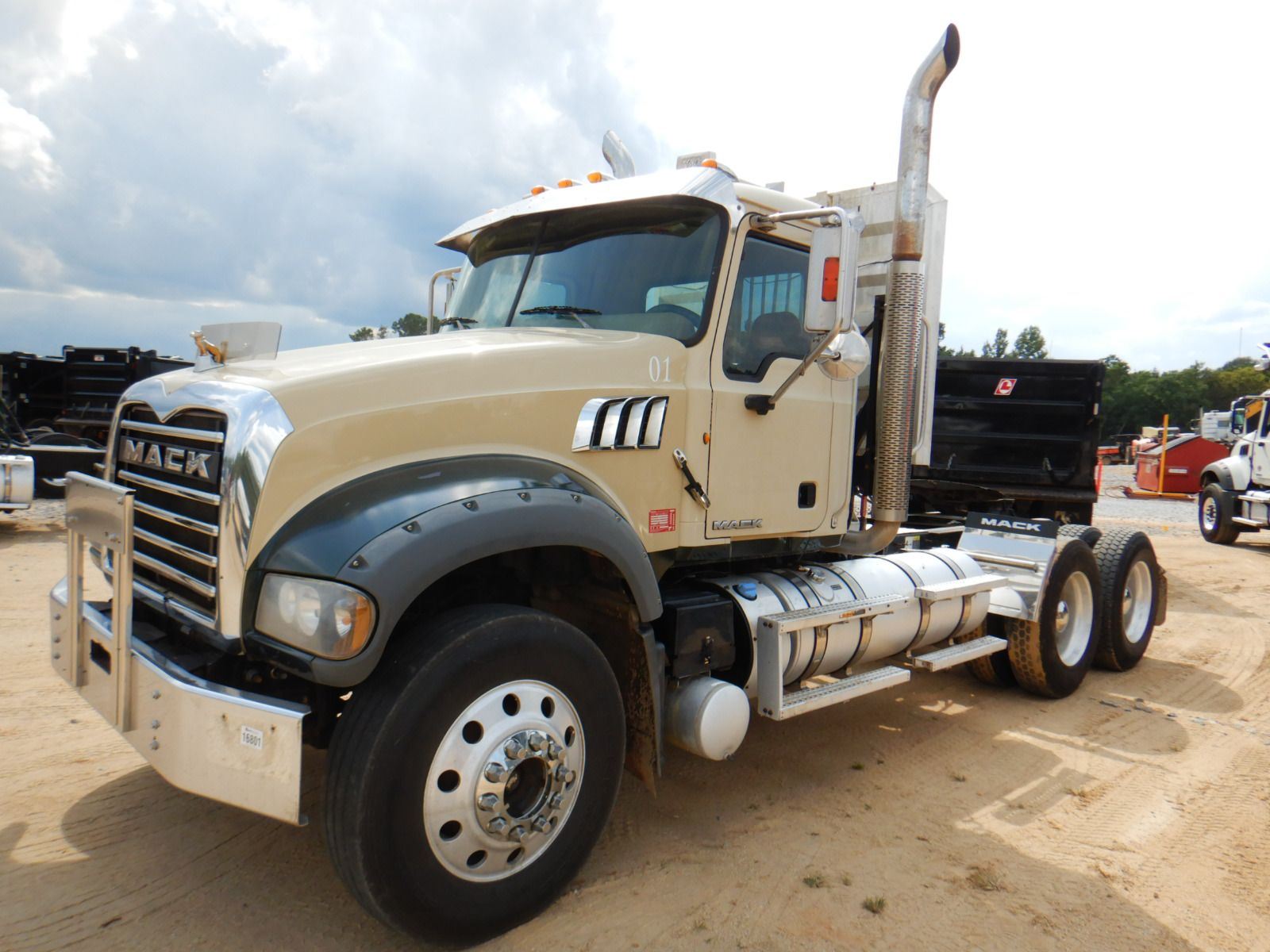 T/A, 445 HP Mack MP8 engine, 10 speed trans, 38K rears, 12k front, 210" W/B, alum headache rack, 11R24.5 tires, all alum