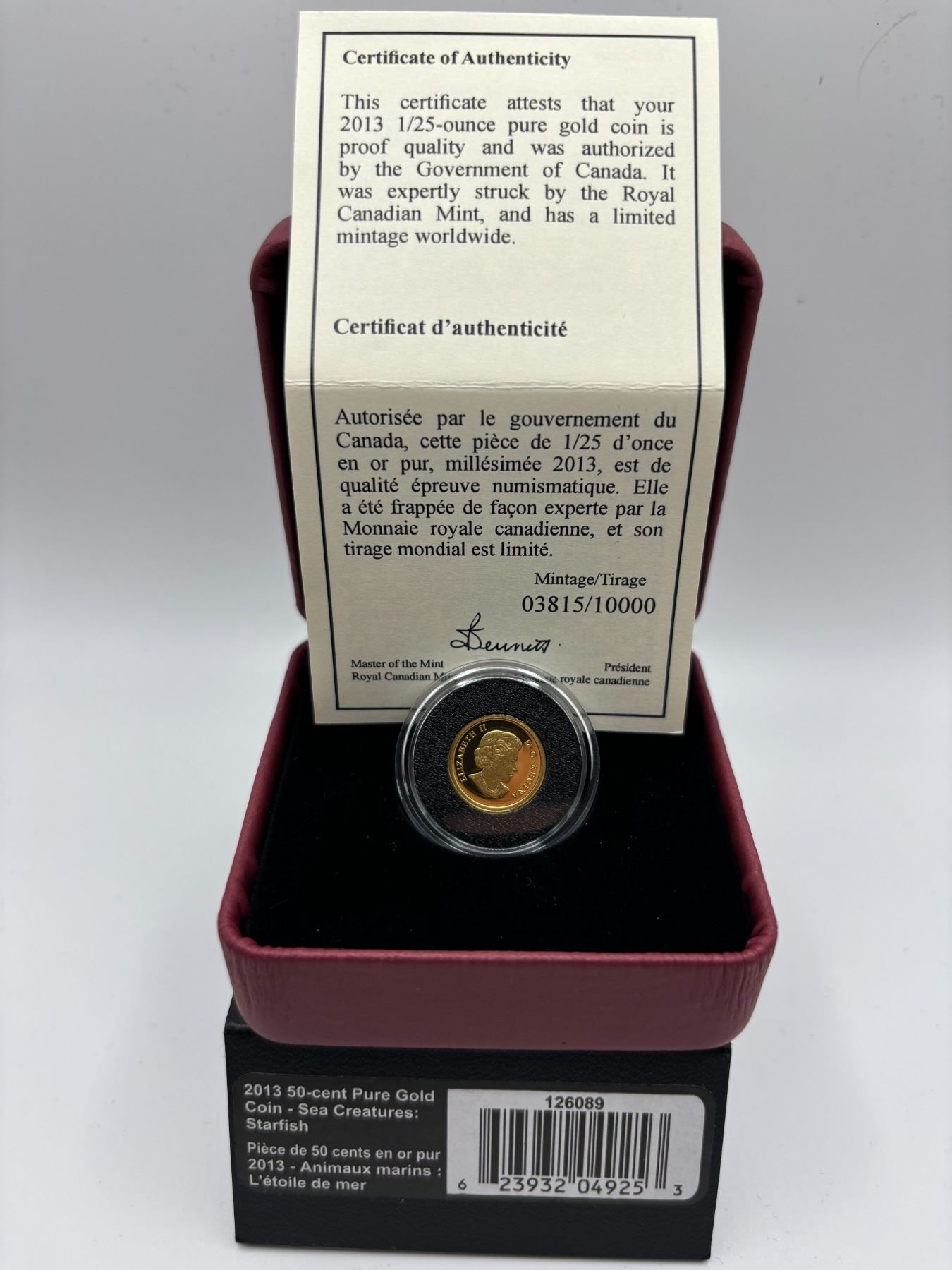 2015 1/25 oz pure gold coin. Sea Creatures Starfish (tax exempt)