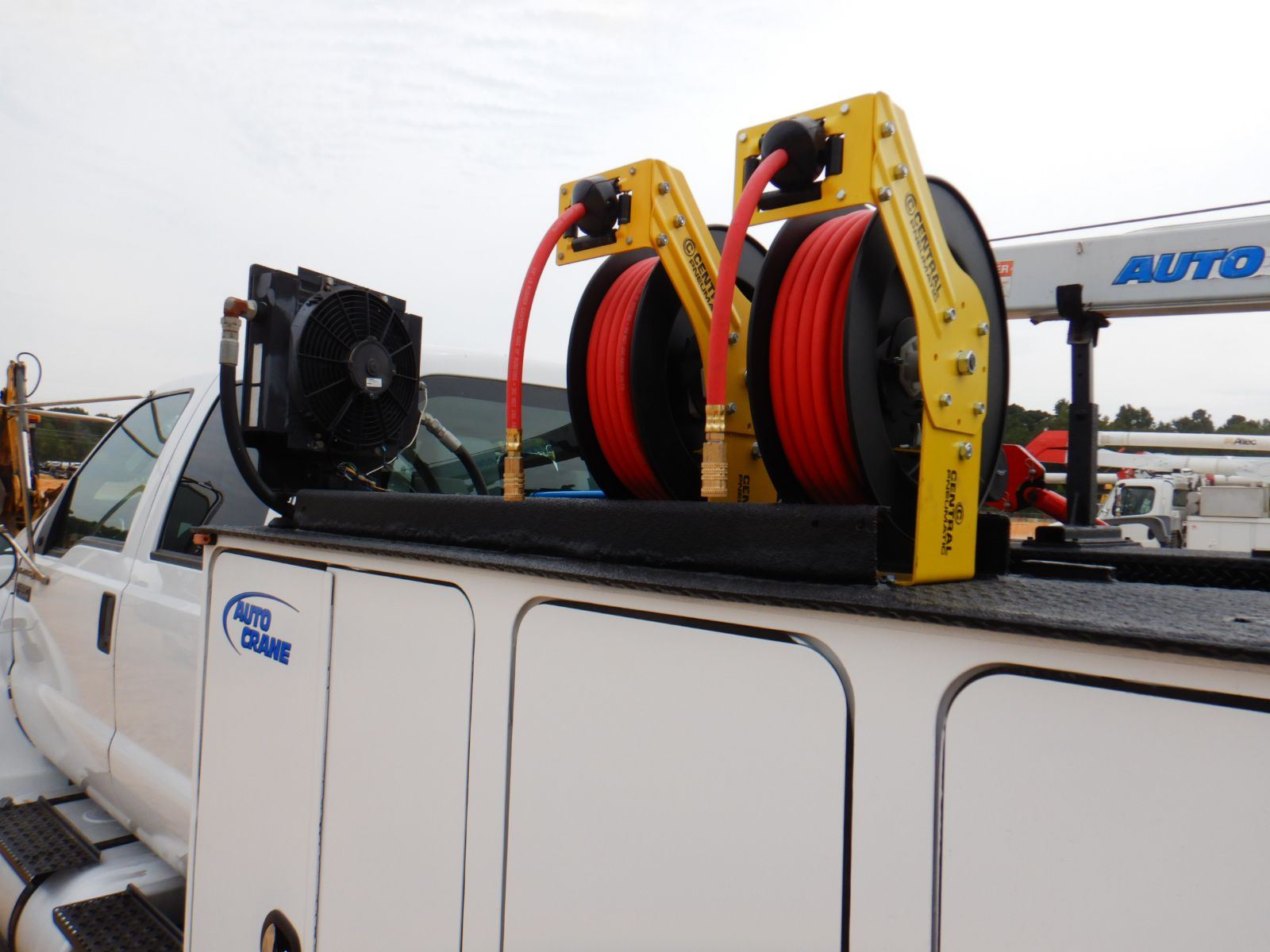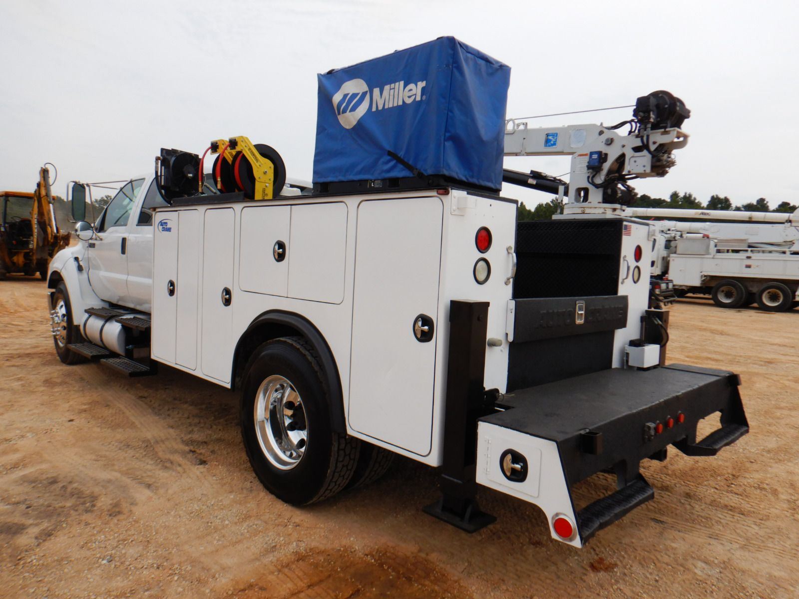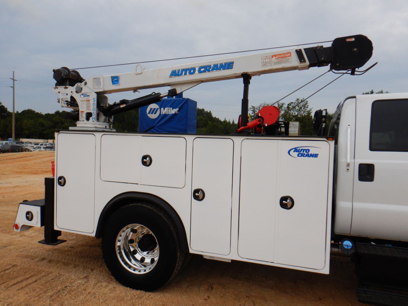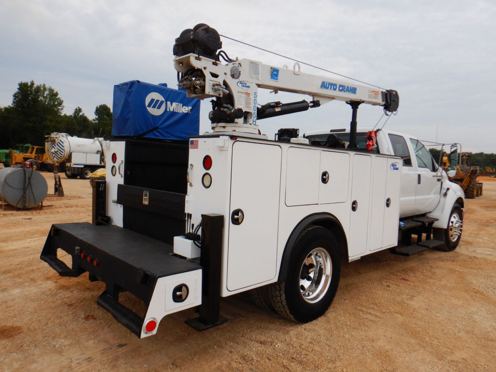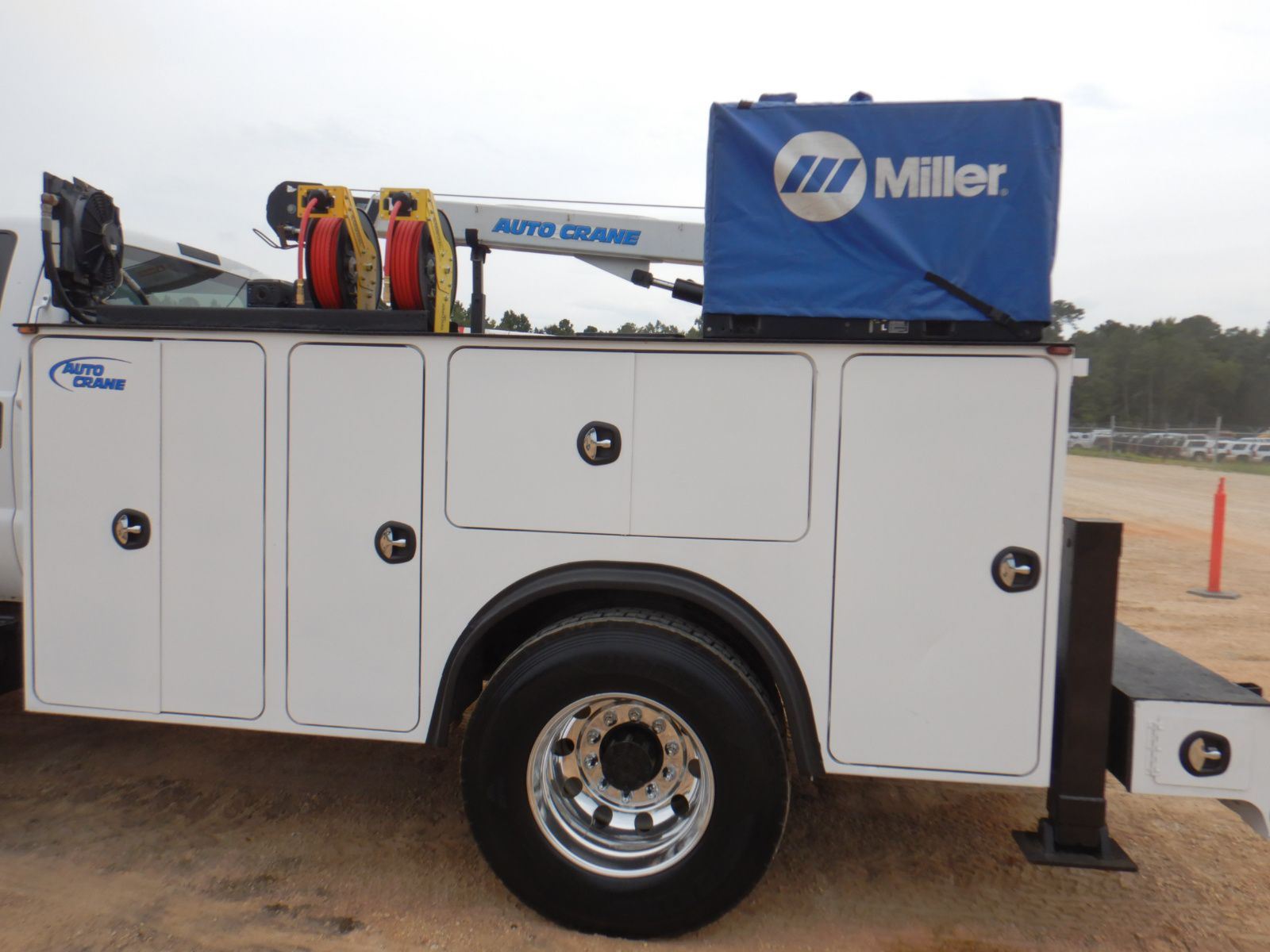 crew cab, Cummins diesel, A/T, Auto Crane body, Auto Crane 5005H crane, IR air compressor, Miller Bobcat 250 welder, hyd outriggers, hose reels