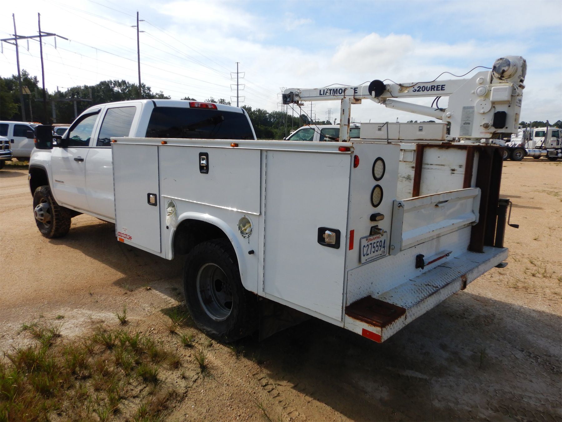 4x4, crew cab, Duramax diesel engine, A/T, Knapheide body, LiftMoore 3200EE crane