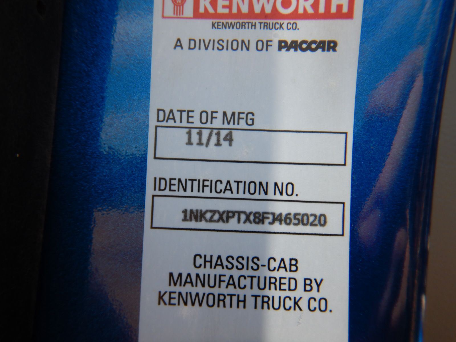 Vehicle ID Number: 1NKZXPTX8FJ465020