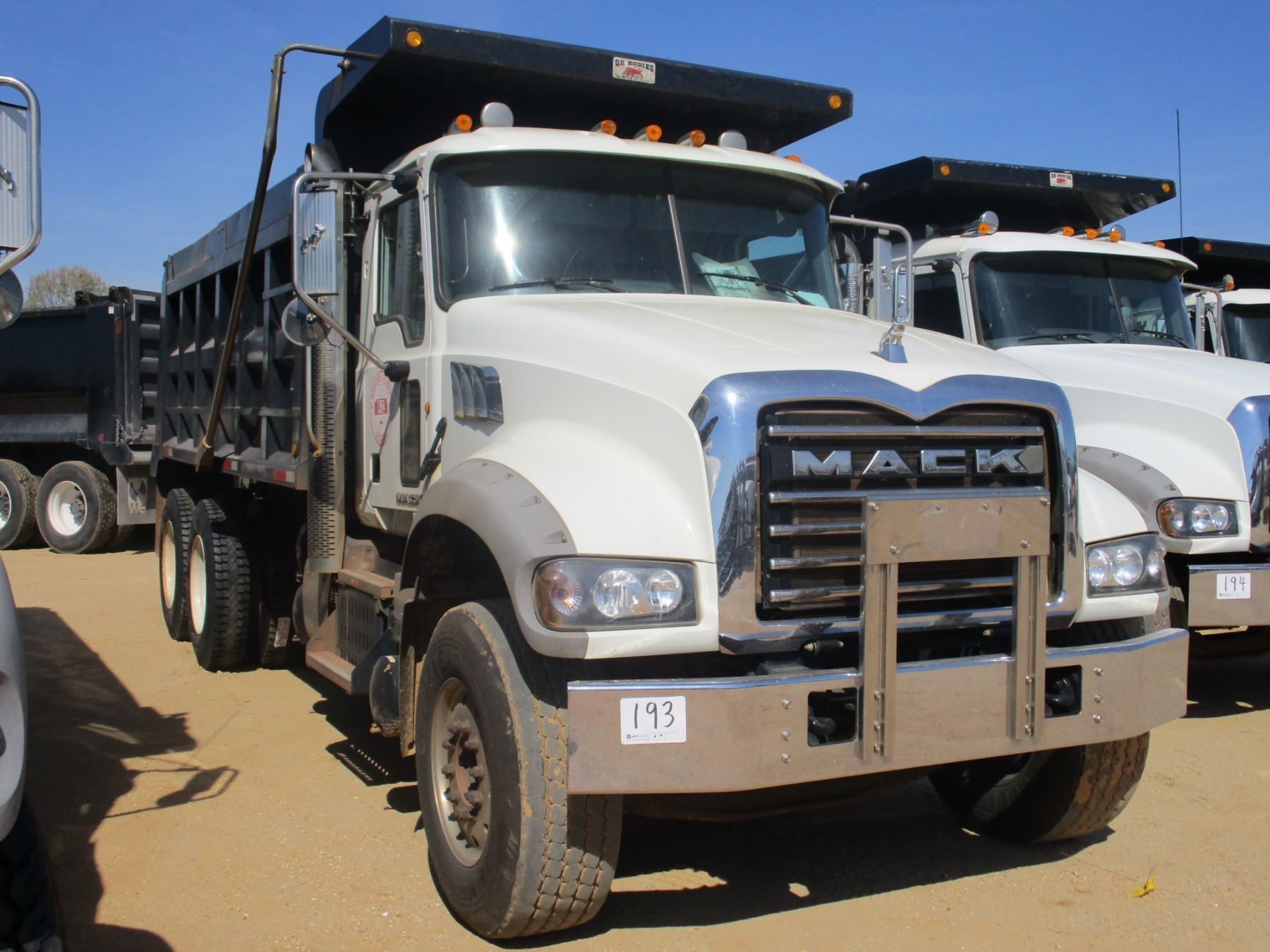 2015 MACK GU713 DUMP, VIN/SN:1M2AX09C4FM021282 - T/A, 425 HP MACK MP8 ENGINE, ALLISON A/T, 44K REARS, 18K FRONT, ENGINE BRAKE, 16' OX BODY, 17-19 YD CAP, 11R24.5 REAR TIRES, 385/65R22.5 ALUM FRONT, ODOMETER READING 158130 MILES (COUNTY OWNED)