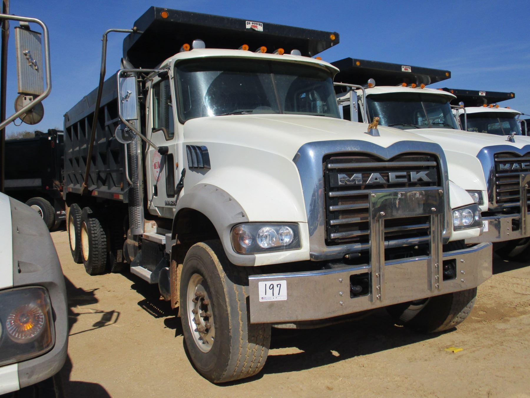 2015 MACK GU713 DUMP, VIN/SN:TMWAX09C2FM021328 - T/A, 425 HP MACK MP8 ENGNE, MACK T310M 10 SPEED TRANS, 44K REARS, 18K FRONT, ENGINE BRAKE, 16' OX BODY, 17-19 YD CAP, 11R24.5 REAR TIRES, 385/65R22.5 ALUM FRONT, ODOMETER READING 130, 467 MILES (COUNTY OWNED)