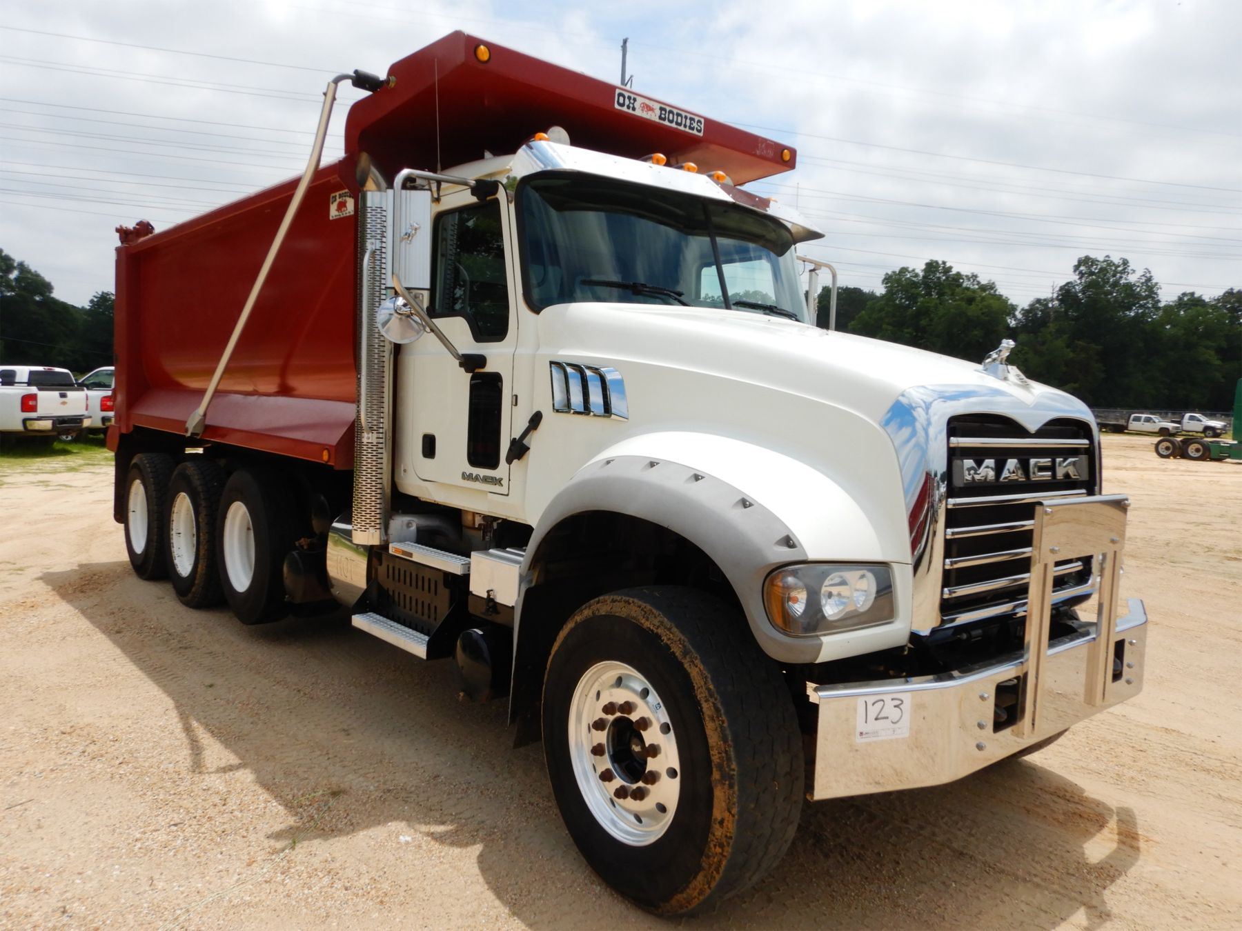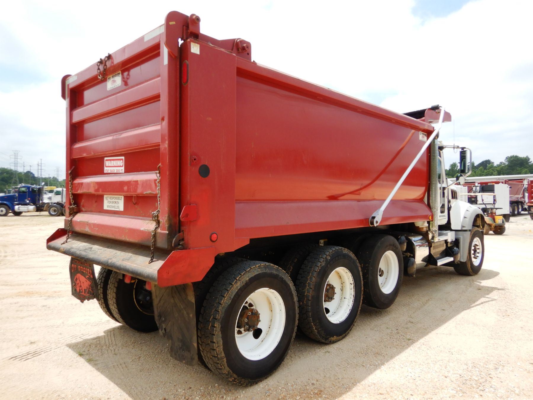 Tri Axle, 425 HP Mack MP8 engine, Allison 4500 RDS A/T, 44K rears, 18K front, 16' Hard Ox body, 11R24.5 rear tires, 385/65R22.5 front tires, alum front, County Owned