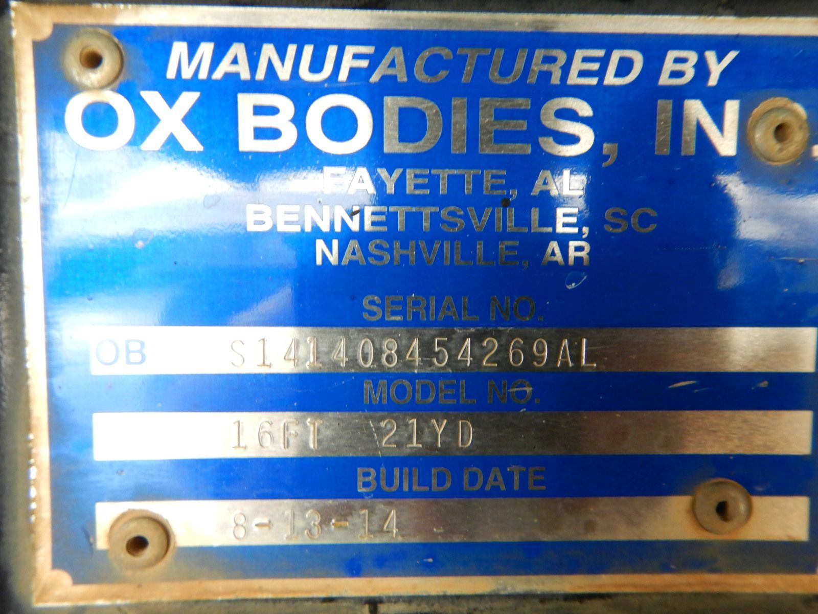 Tri Axle, 425 HP Mack MP8 engine, Mack T310M 10 speed trans, 44K rears, 18K front, 16’ Hard Ox body, 11R24.5 rear tires, 385/65R22.5 front tires, alum front