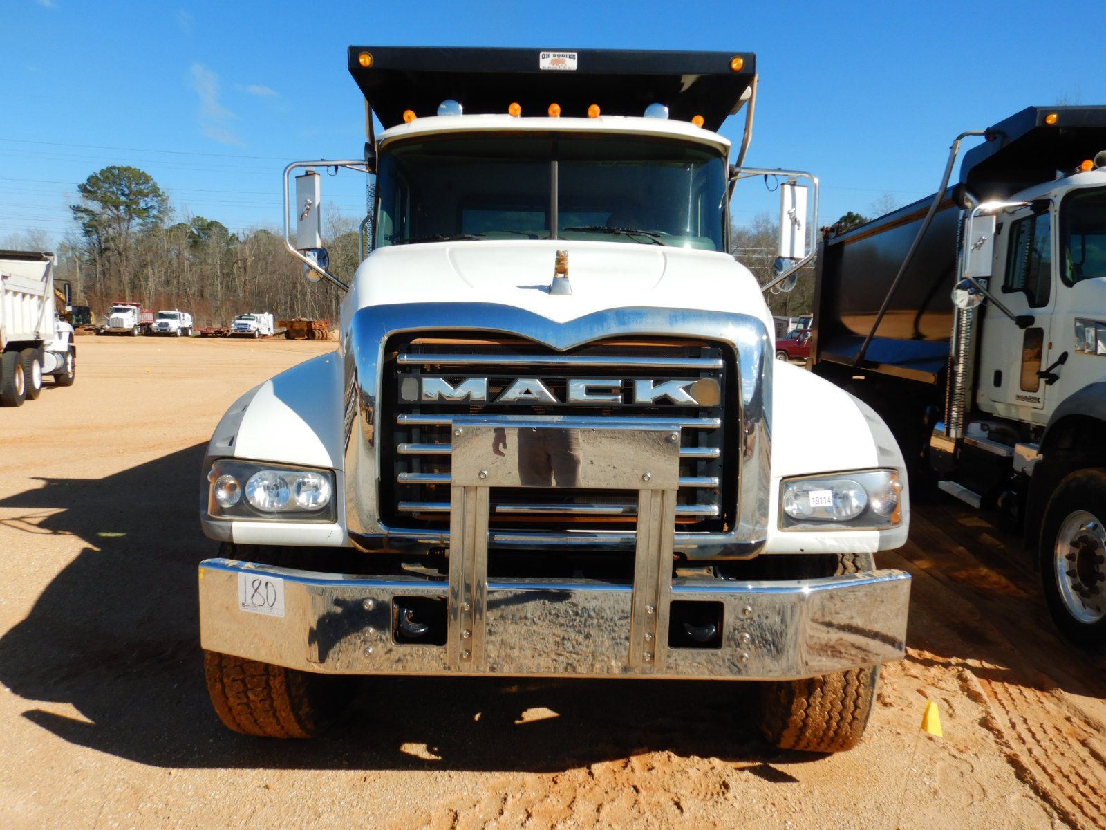 Tri Axle, 425 HP Mack MP8 engine, 10 speed trans, 44K rears, 18K front, 16' Hard Ox body, 11R24.5 rear tires, 385/65R22.5 front tires