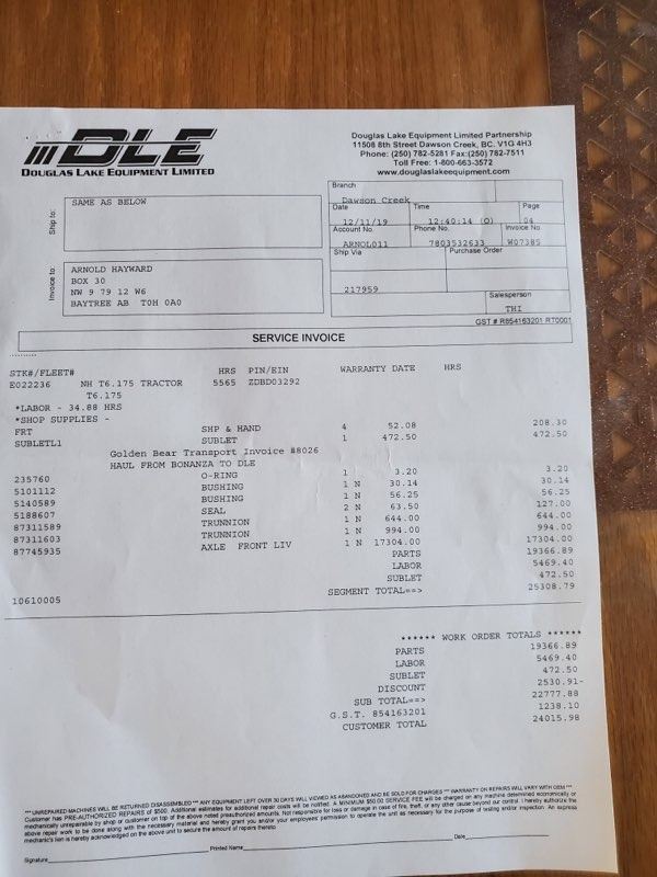 METER: 5,700 HRS 145 HP, PWR SHIFT TRANS, 3 PT, 3 HYD, DUAL PTO, NH 845TL FEL, BUCKET & GRAPPLE, REAR WHEEL WTS, 20.8R38 R/T, 16.9-28 F/T, *2019 WORK ORDER FOR $24,015.98 ON FRONT