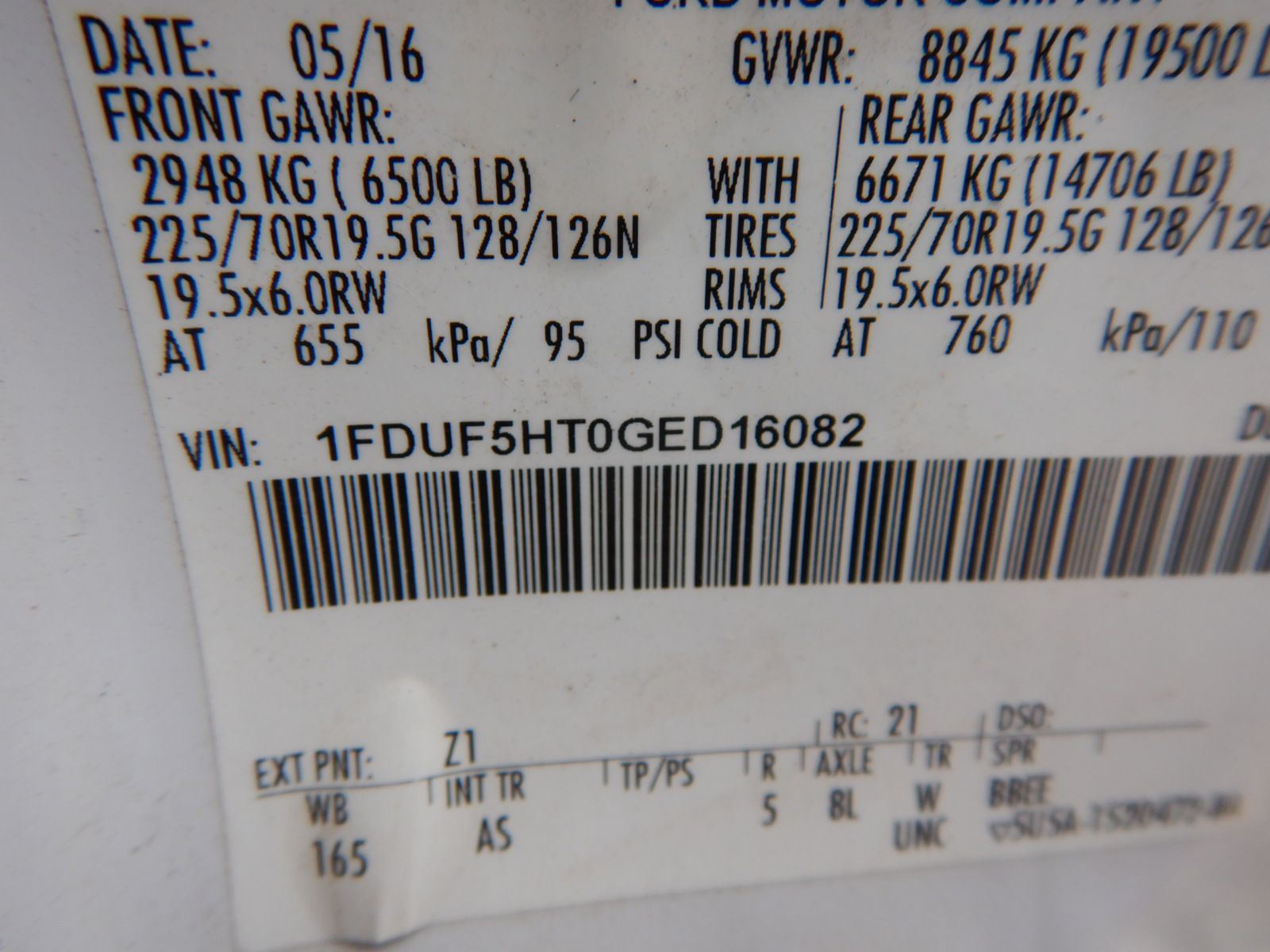 Vehicle ID Number: 1FDUF5HT0GED16082