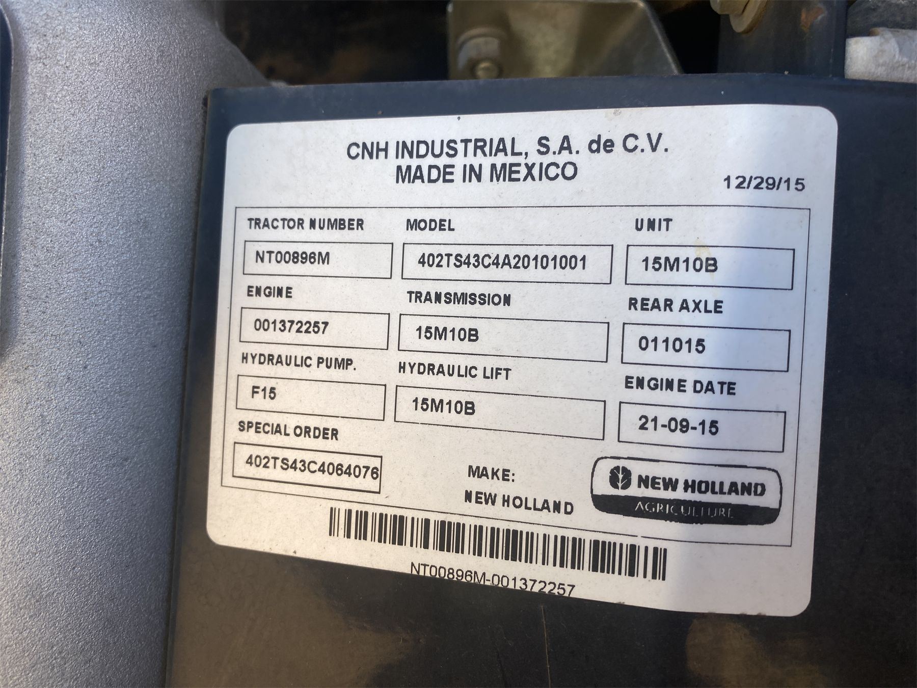 Serial Number: NT00896M