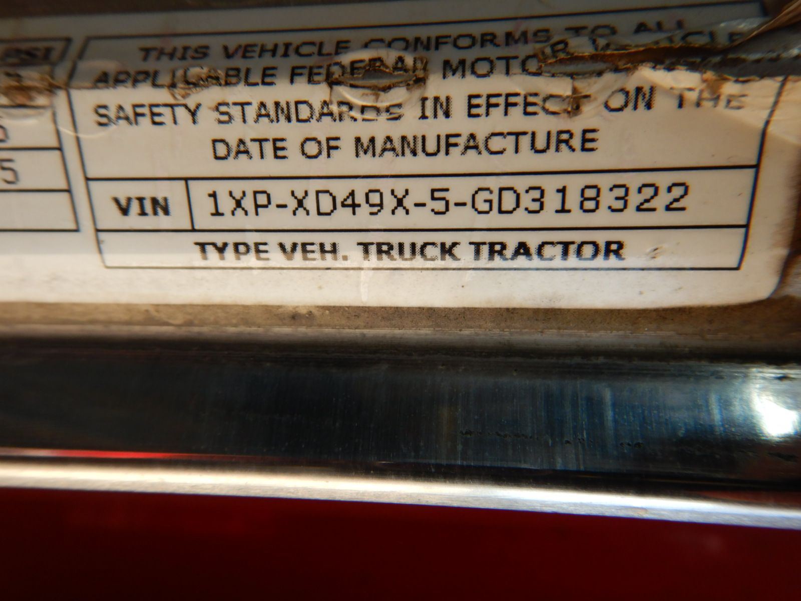 Vehicle ID Number: 1XPXD49X5GD318322