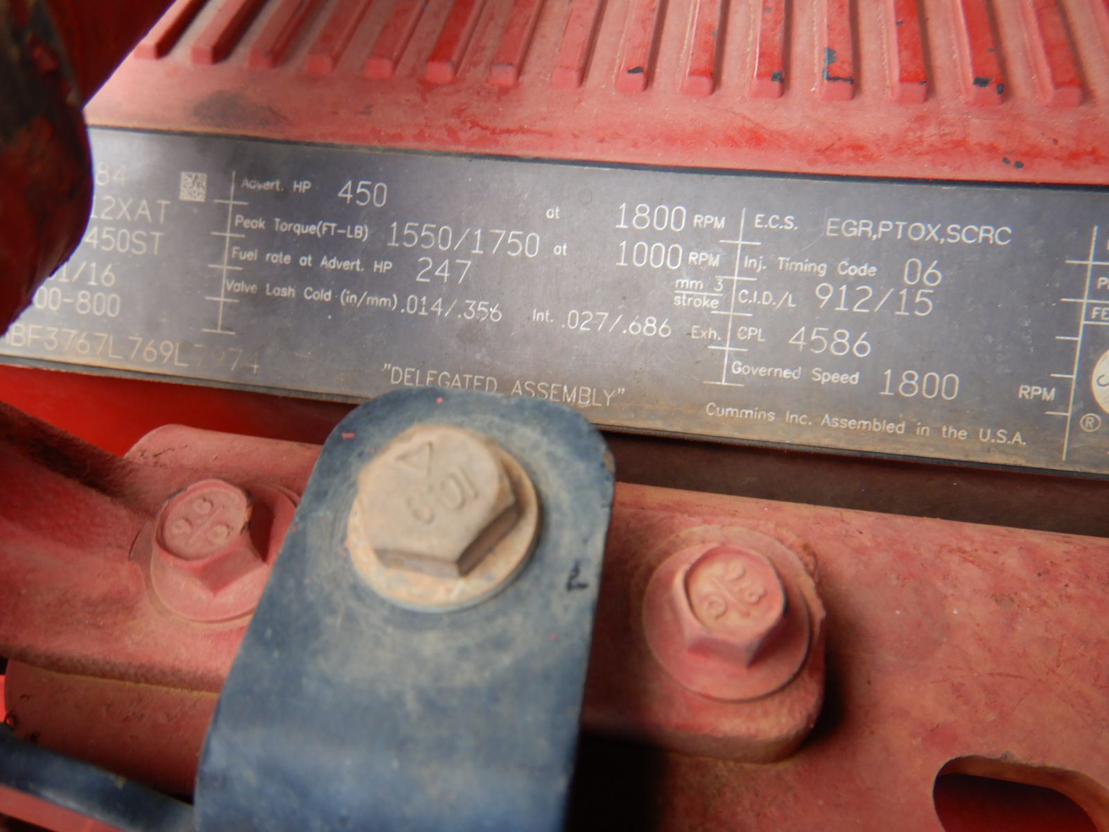 T/A, 450 HP Cummins ISX engine, 10 speed trans, 40K rears, 13,200 lb. front, 210" W/B, alum headache rack, 11R24.5 tires, all alum (Emissions Altered)