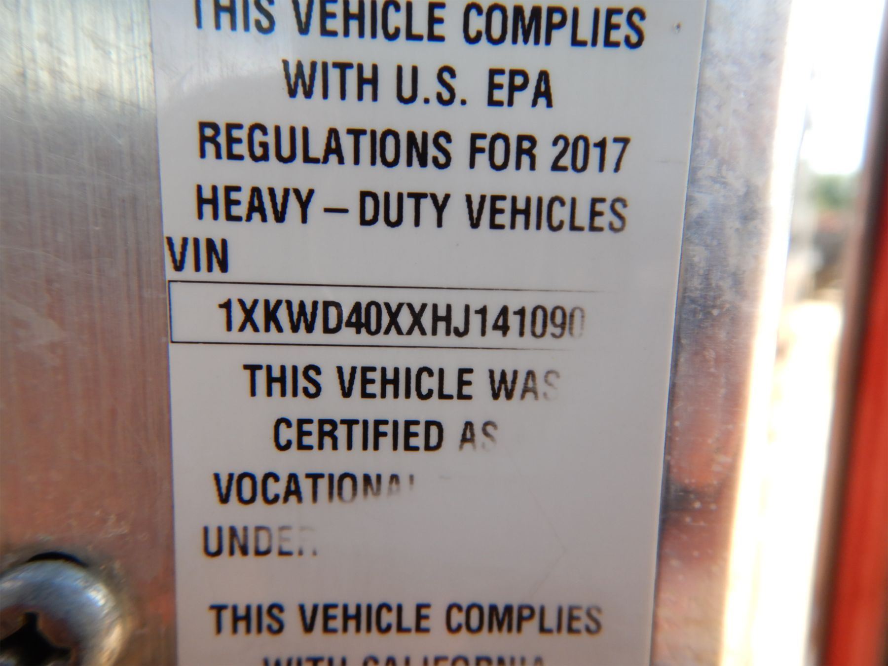 Vehicle ID Number: 1XKWD40XXHJ141090