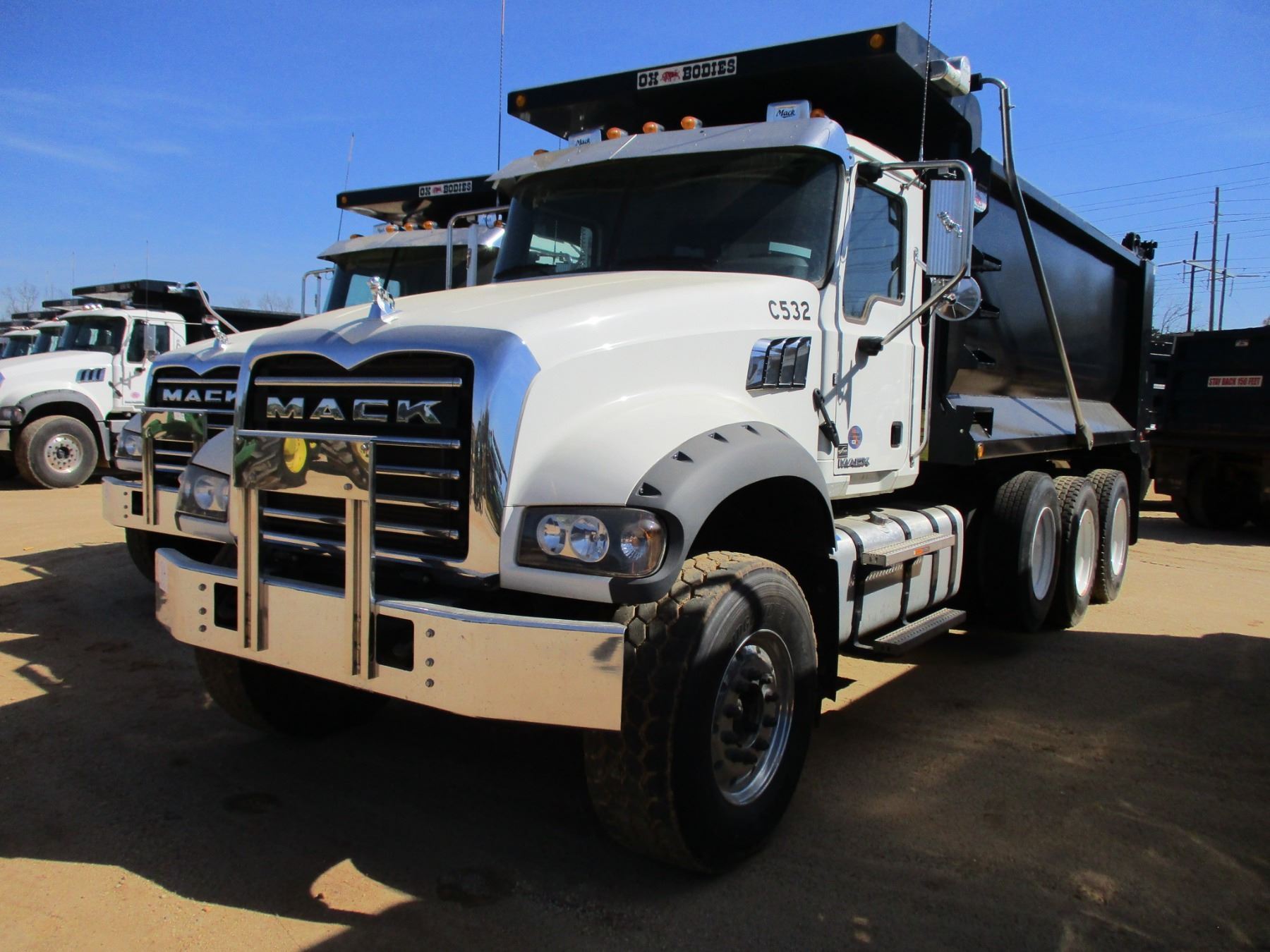 2017 MACK GU713 DUMP, VIN/SN:1M2AX07C5HM036489 - TRI-AXLE, 455 HP MACK MP8 ENGINE, ALLISON 4500 RDS A/T, 44K REARS, 18K FRONT, ENGINE BRAKE, 16' HARD OX BODY, HIGH LIFT GATE, 385/65R22.5 FRONT TIRES, 11R24.5 REAR TIRES, ALUM FRONT, ODOMETER READING 7,776 MILES (COUNTY OWNED)