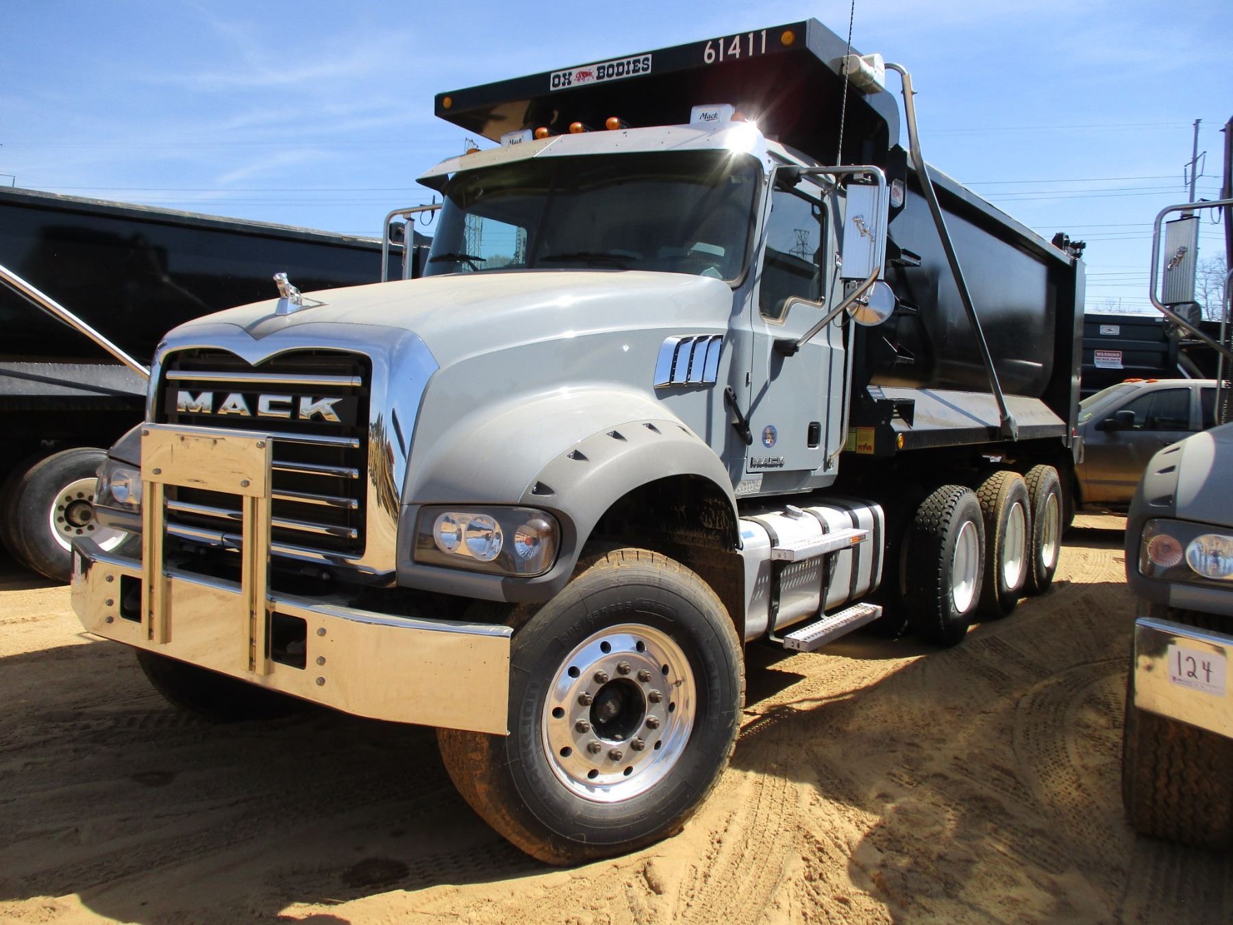 2017 MACK GU713 DUMP, VIN/SN:1M2AX07C5HM061411 - TRI-AXLE, 455 HP MACK MP8 ENGINE, ALLISON 4500 RDS A/T, 44K REARS, 18K FRONT, ENGINE BRAKE, 16' HARD OX BODY, HIGH LIFT GATE, 385/65R22.5 FRONT TIRES, 11R24.5 REAR TIRES, ALUM FRONT, ODOMETER READING 25,365 MILES (COUNTY OWNED)