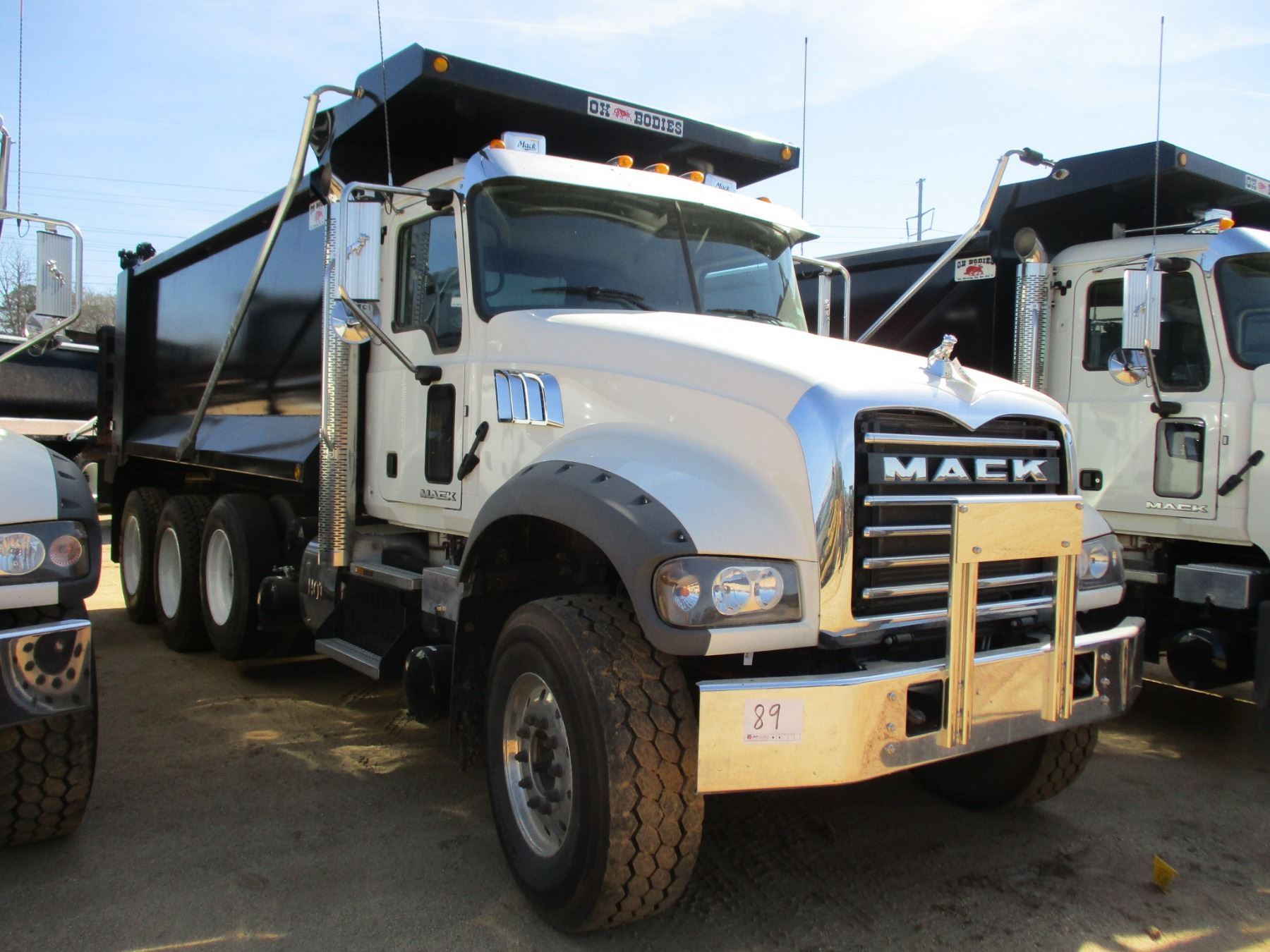 2017 MACK GU713 DUMP, VIN/SN:1M2AX07C6HM036596 - TRI-AXLE, 455 HP MACK MP8 ENGINE, ALLISON 4500 RDS A/T, 44K REARS, 18K FRONT, ENGINE BRAKE, 16' HARD OX BODY, 385/65R22.5 FRONT TIRES, 11R24.5 REAR TIRES, ALUM FRONT, ODOMETER READING 12,395 MILES (COUNTY OWNED)