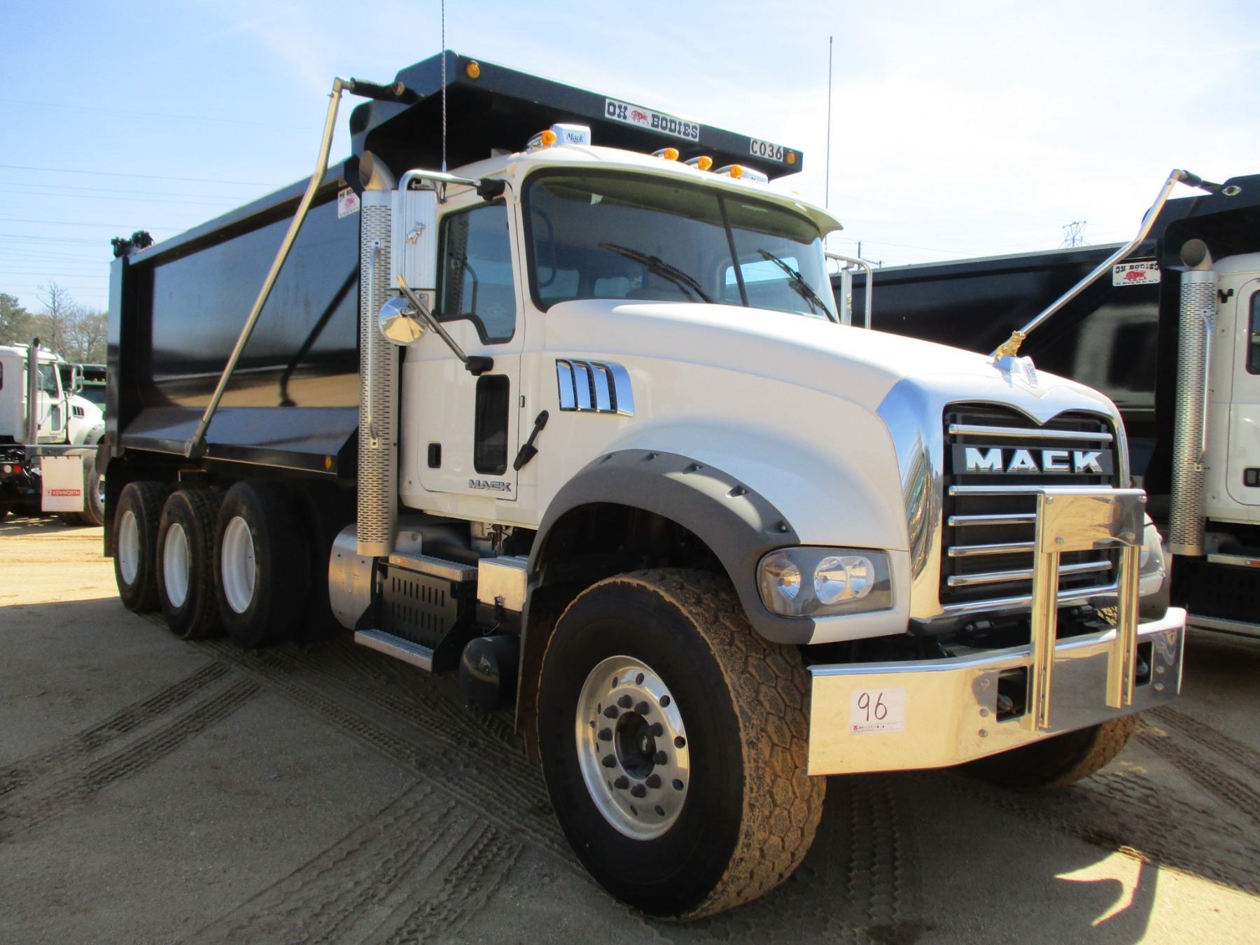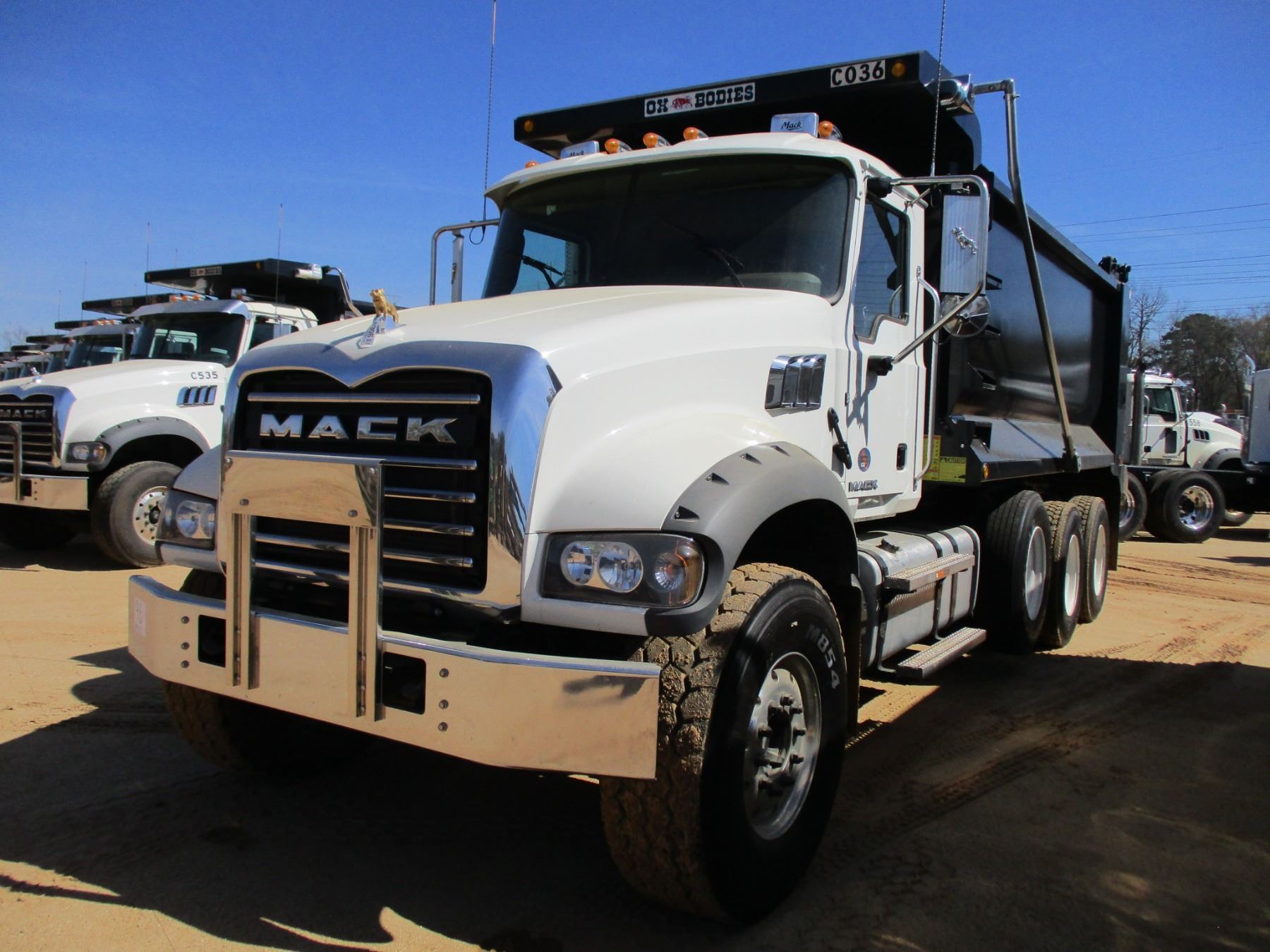 2017 MACK GU713 DUMP, VIN/SN:1M2AX07C7HM034680 - TRI-AXLE, 455 HP MACK MP8 ENGINE, MACK T310M 10 SPEED TRANS, 44K REARS, 20K FRONT, ENGINE BRAKE, 16' OX BODY, 425/65R22.5 FRONT TIRES, 11R24.5 REAR TIRES, ALUM FRONT, ODOMETER READING 9,201 MILES (COUNTY OWNED)