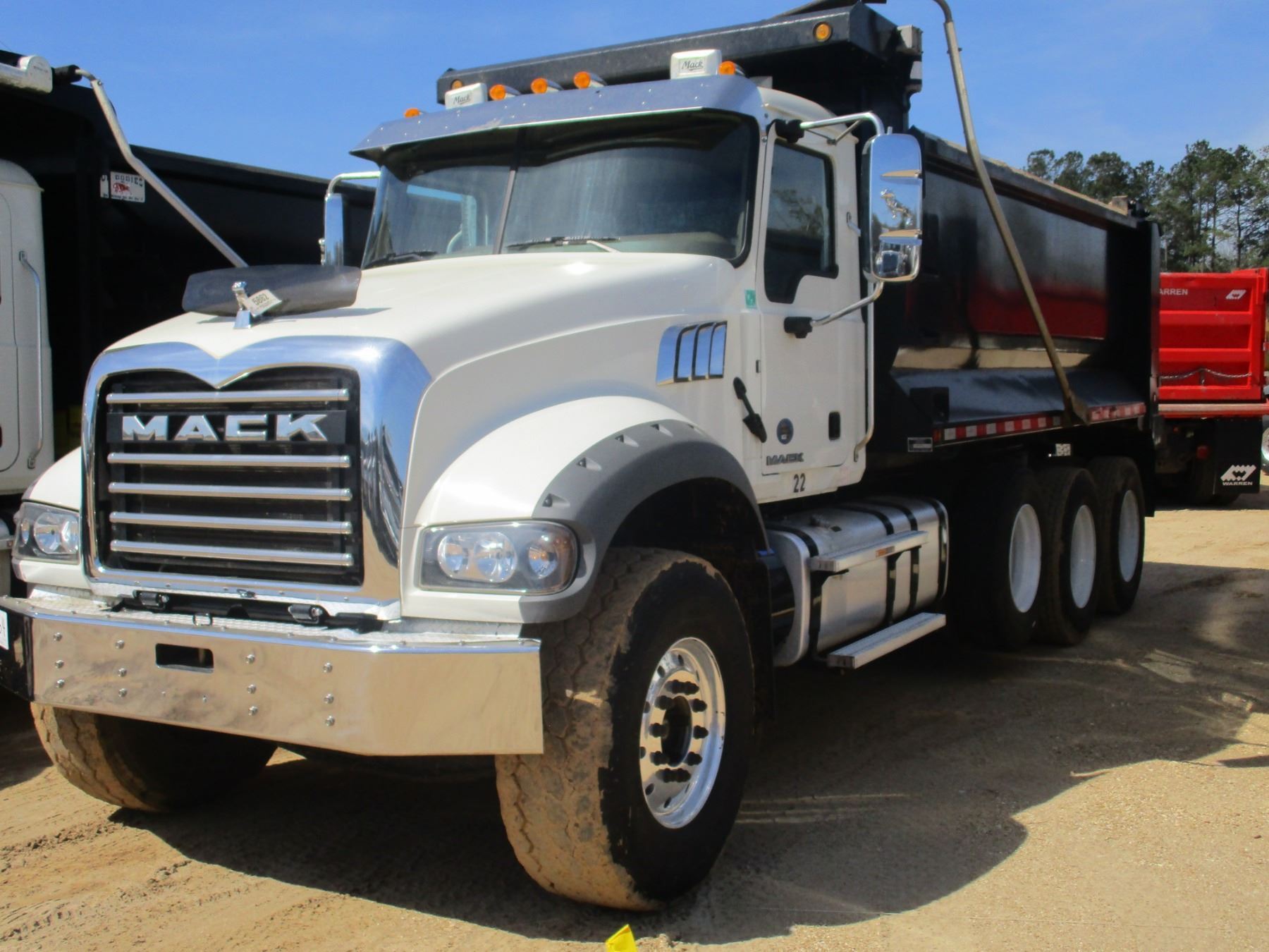 2017 MACK GU713 DUMP, VIN/SN:1M2AX07C9HM033904 - TRI-AXLE, 455 HP MACK MP8 ENGINE, ALLISON 4500RDS A/T, 44K REARS, 20K FRONT, ENGINE BRAKE, 16' DRAGON AR450 BODY, 425/65R22.5 FRONT TIRES, 11R24.5 REAR TIRES, ALUM FRONT, ODOMETER READING 28,924 MILES (COUNTY OWNED)