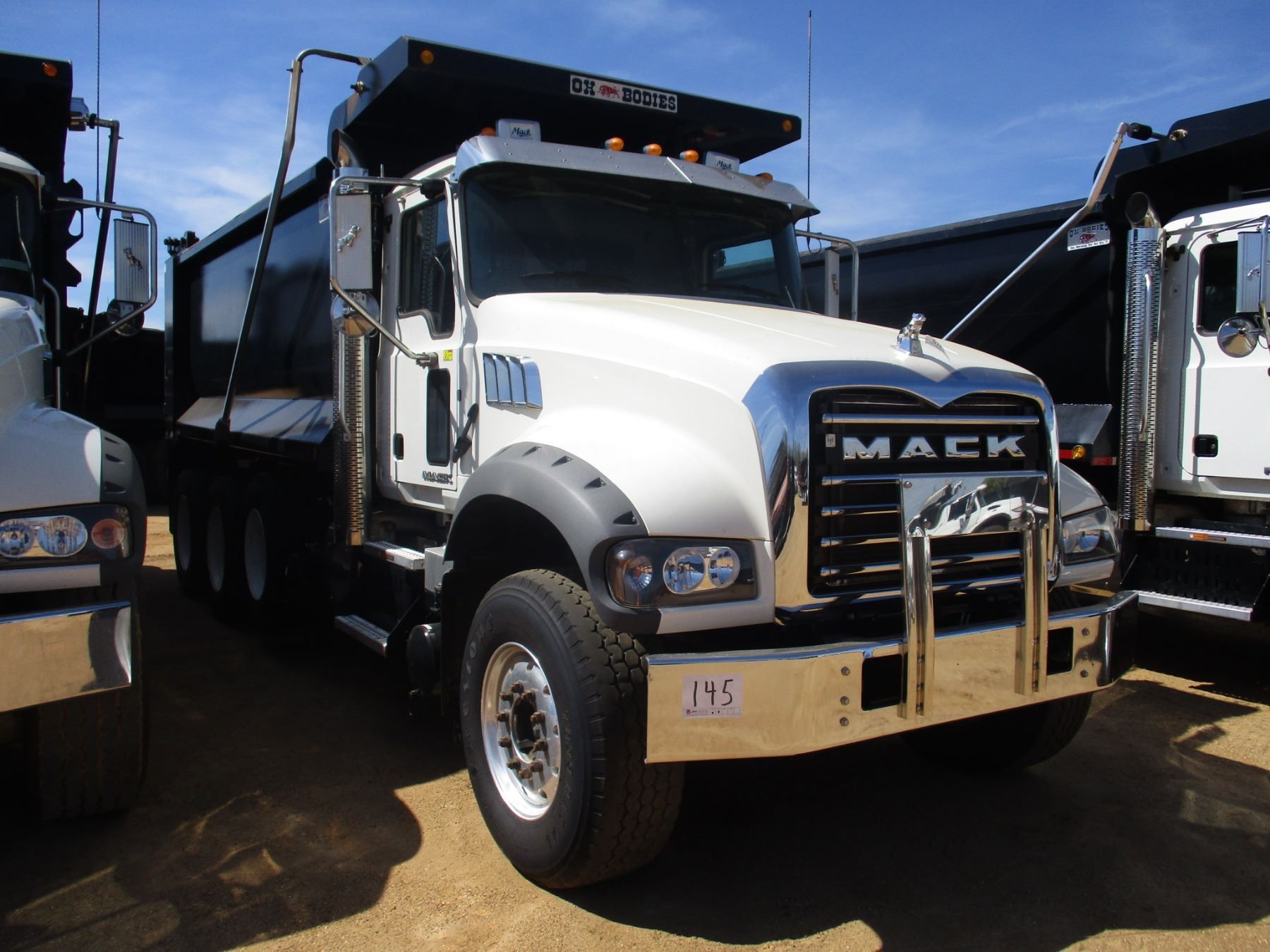 2017 MACK GU713 DUMP, VIN/SN:1M2AX07C9HM061427 - TRI-AXLE, 455 HP MACK MP8 ENGINE, ALLISON 4500 RDS A/T, 44K REARS, 18K FRONT, ENGINE BRAKE, 16' HARD OX BODY, HIGH LIFT GATE, 385/65R22.5 FRONT TIRES, 11R24.5 REAR TIRES, ALUM FRONT, ODOMETER READING 46,487 MILES (COUNTY OWNED)