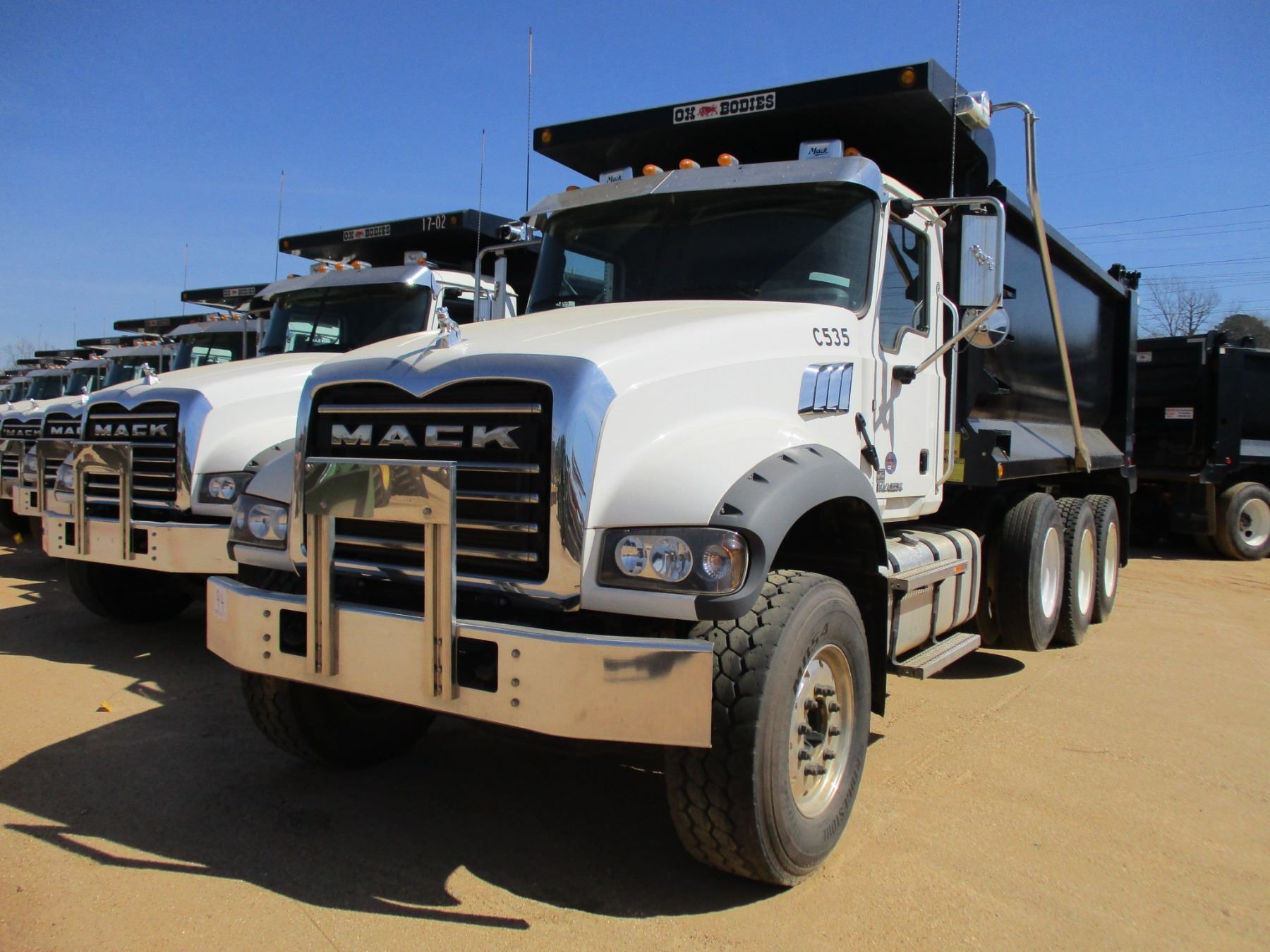 2017 MACK GU713 DUMP, VIN/SN:1M2AX07CXHM036505 - TRI-AXLE, 455 HP MACK MP8 ENGINE, ALLISON 4500 RDS A/T, 44K REARS, 18K FRONT, ENGINE BRAKE, 16' HARD OX BODY, HIGH LIFT GATE, 385/65R22.5 FRONT TIRES, 11R24.5 REAR TIRES, ALUM FRONT, ODOMETER READING 10,908 MILES (COUNTY OWNED)