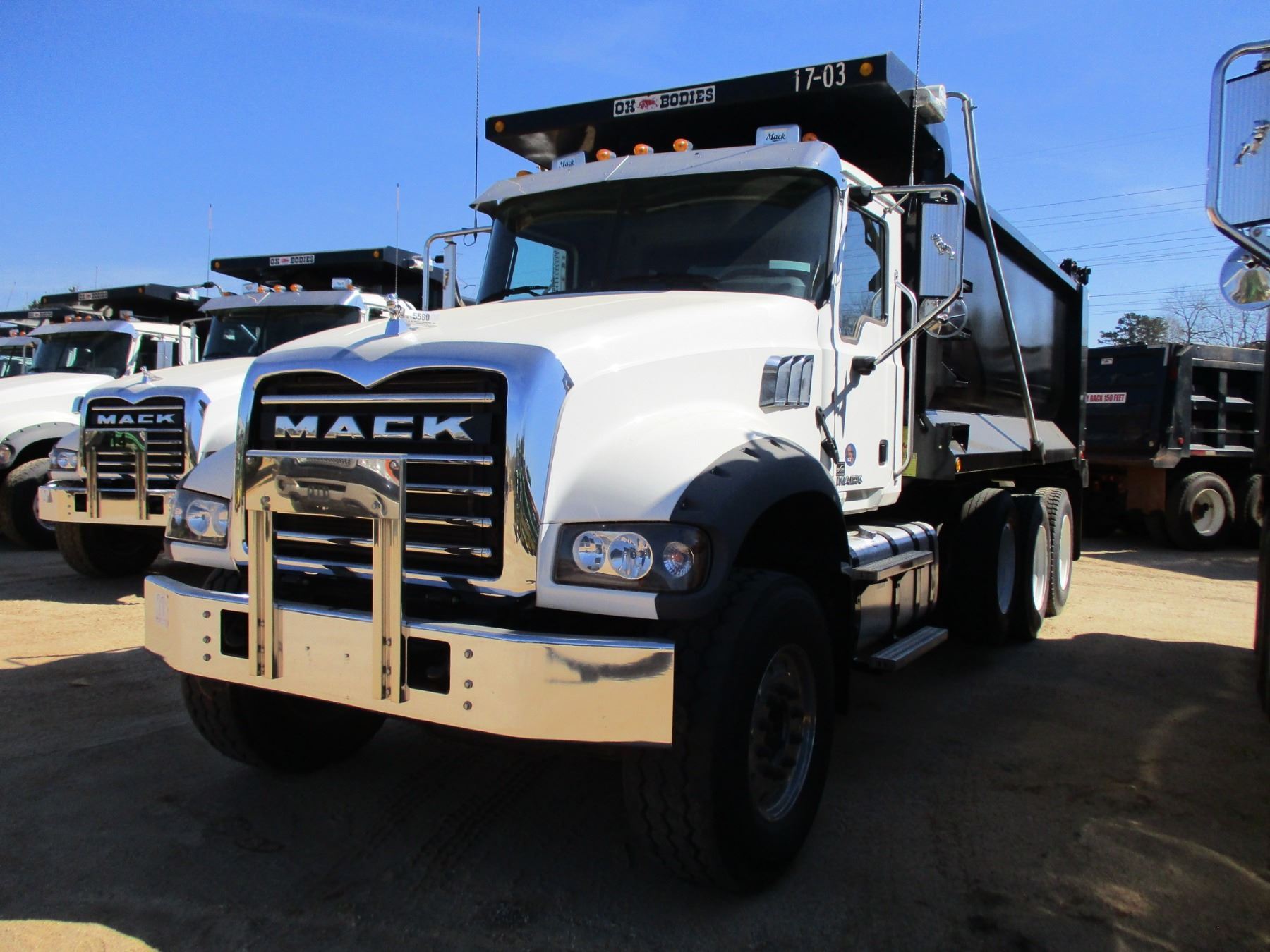 2017 MACK GU713 DUMP, VIN/SN:1M2AX07CXHM036603 - TRI-AXLE, 455 HP MACK MP8 ENGINE, ALLISON 4500 RDS A/T, 44K REARS, 18K FRONT, ENGINE BRAKE, 16' HARD OX BODY, 385/65R22.5 FRONT TIRES, 11R24.5 REAR TIRES, ALUM FRONT, ODOMETER READING 27,958 MILES (COUNTY OWNED)