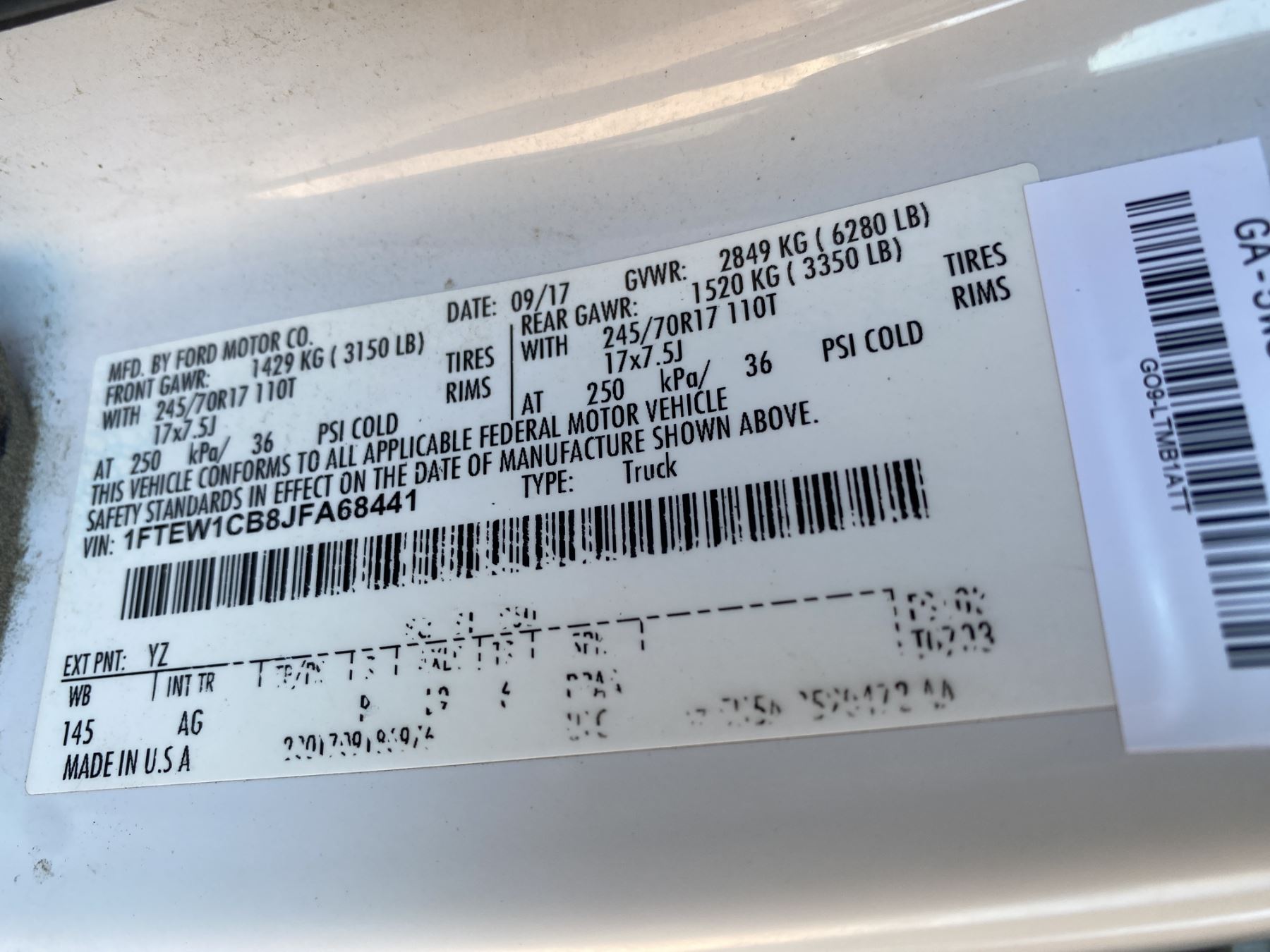 Vehicle ID Number: 1FTEW1CB8JFA68441