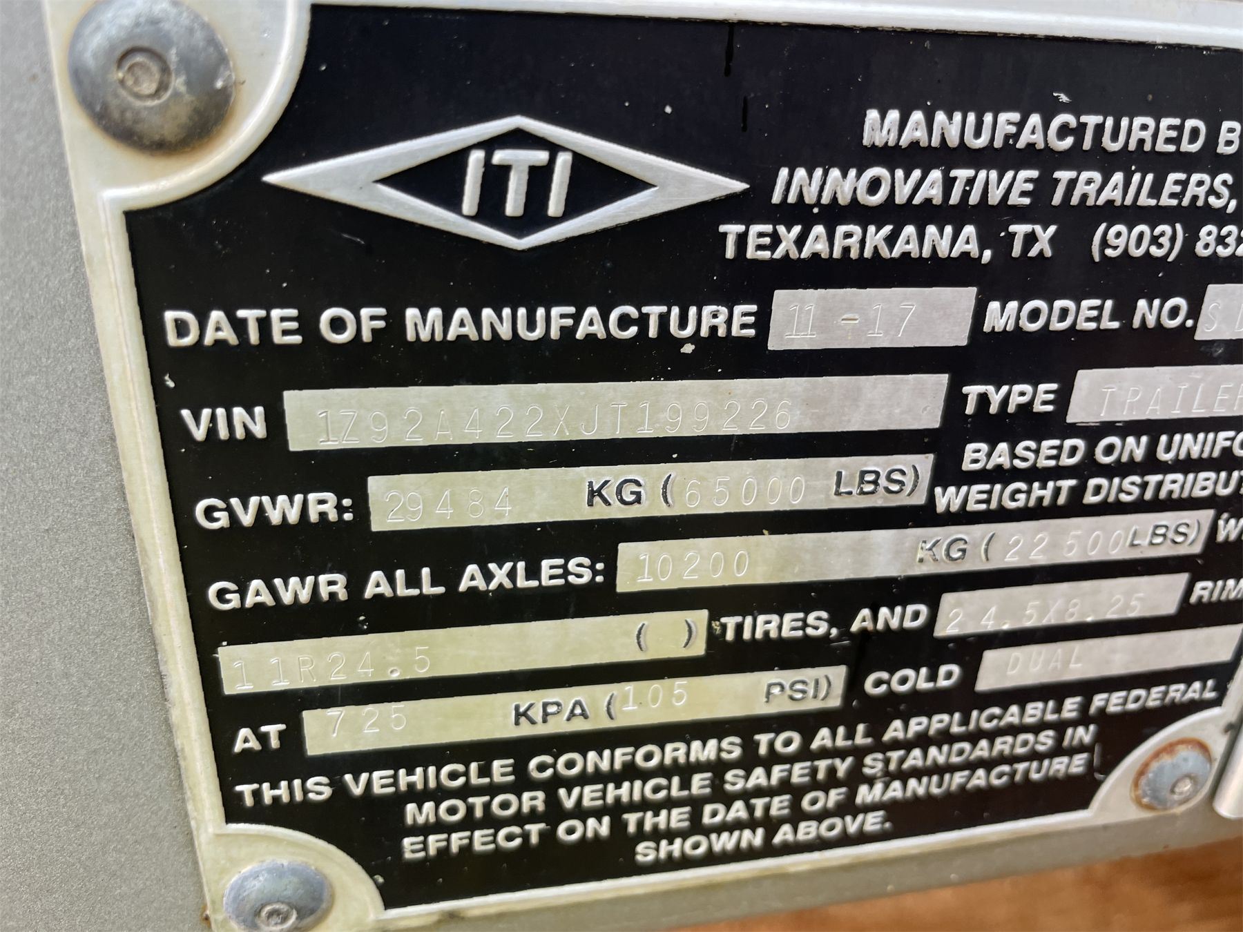 Vehicle ID Number: 1Z92A422XJT199226
