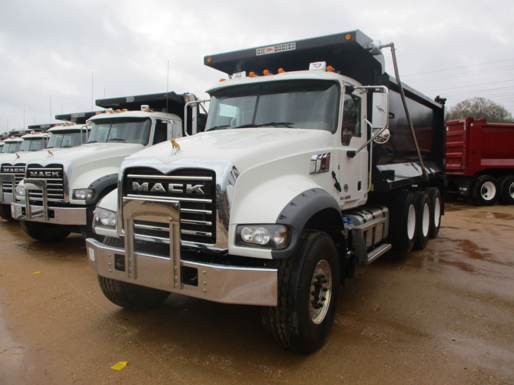 2018 MACK GU713 DUMP, VIN/SN:1M2AX07C0JM037104 - TRI-AXLE, 455 HP MACK MP8 ENGINE, MACK T310M 10 SPEED TRANS, 44K REARS, 20K FRONT, ENGINE BRAKE, 16' OX BODY, 425/65R22.5 FRONT TIRES, 11R24.5 REAR TIRES, ALUM FRONT, ODOMETER READING 16,370 MILES (COUNTY OWNED)