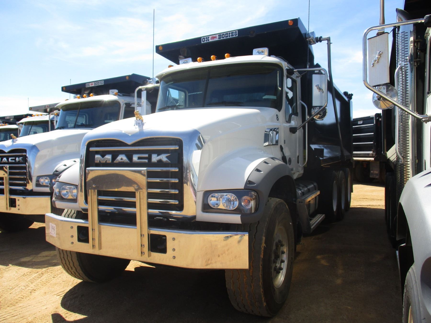 2018 MACK GU713 DUMP, VIN/SN:1M2AX07C5JM037096 - TRI-AXLE, 455 HP MACK MP8 ENGINE, MACK T310M 10 SPEED TRANS, 44K REARS, 20K FRONT, ENGINE BRAKE, 16' HARD OX BODY, 425/65R22.5 FRONT TIRES, 11R24.5 REAR TIRES, ALUM FRONT, ODOMETER READING 12,104 MILES (COUNTY OWNED) Page 12 Lot Num. Description