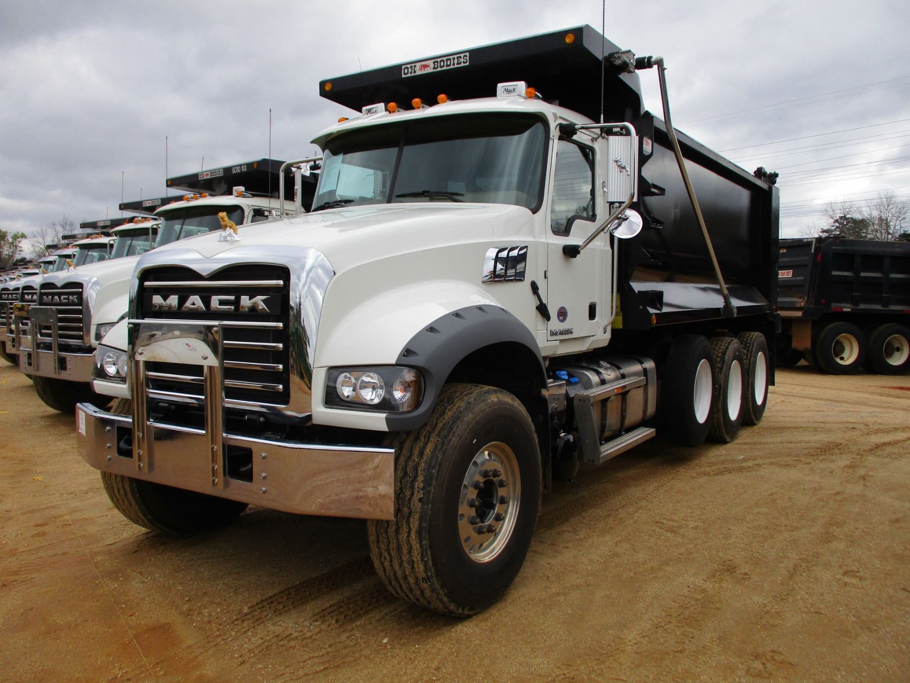 2018 MACK GU713 DUMP, VIN/SN:1M2AX07C5JM037101 - TRI-AXLE, 455 HP MACK MP8 ENGINE, MACK T310M 10 SPEED TRANS, 44K REARS, 20K FRONT, ENGINE BRAKE, 16' HARD OX BODY, 425/65R22.5 FRONT TIRES, 11R24.5 REAR TIRES, ALUM FRONT, ODOMETER READING 15,437 MILES (COUNTY OWNED)
