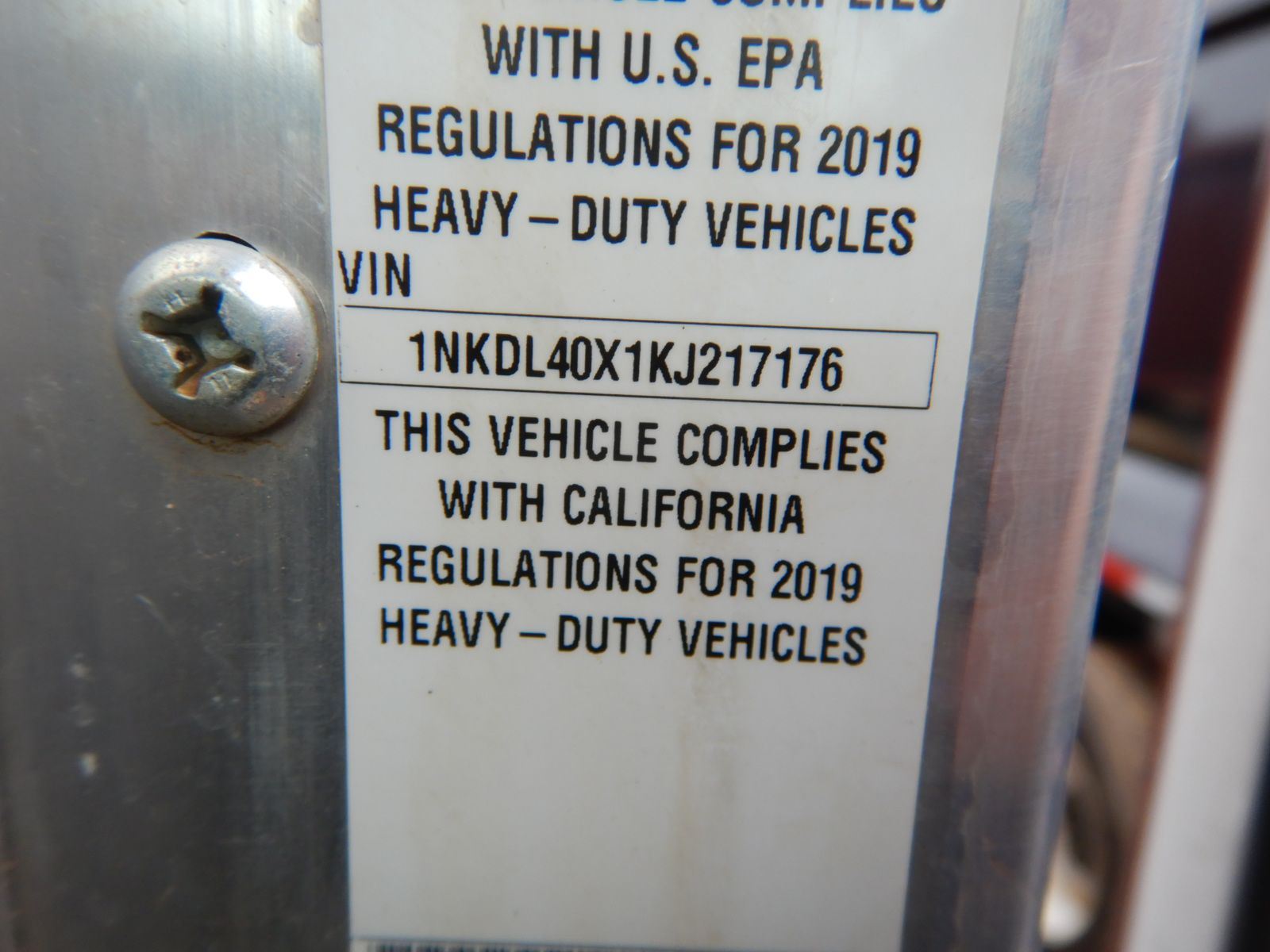 Vehicle ID Number: 1NKDL40X1KJ217176