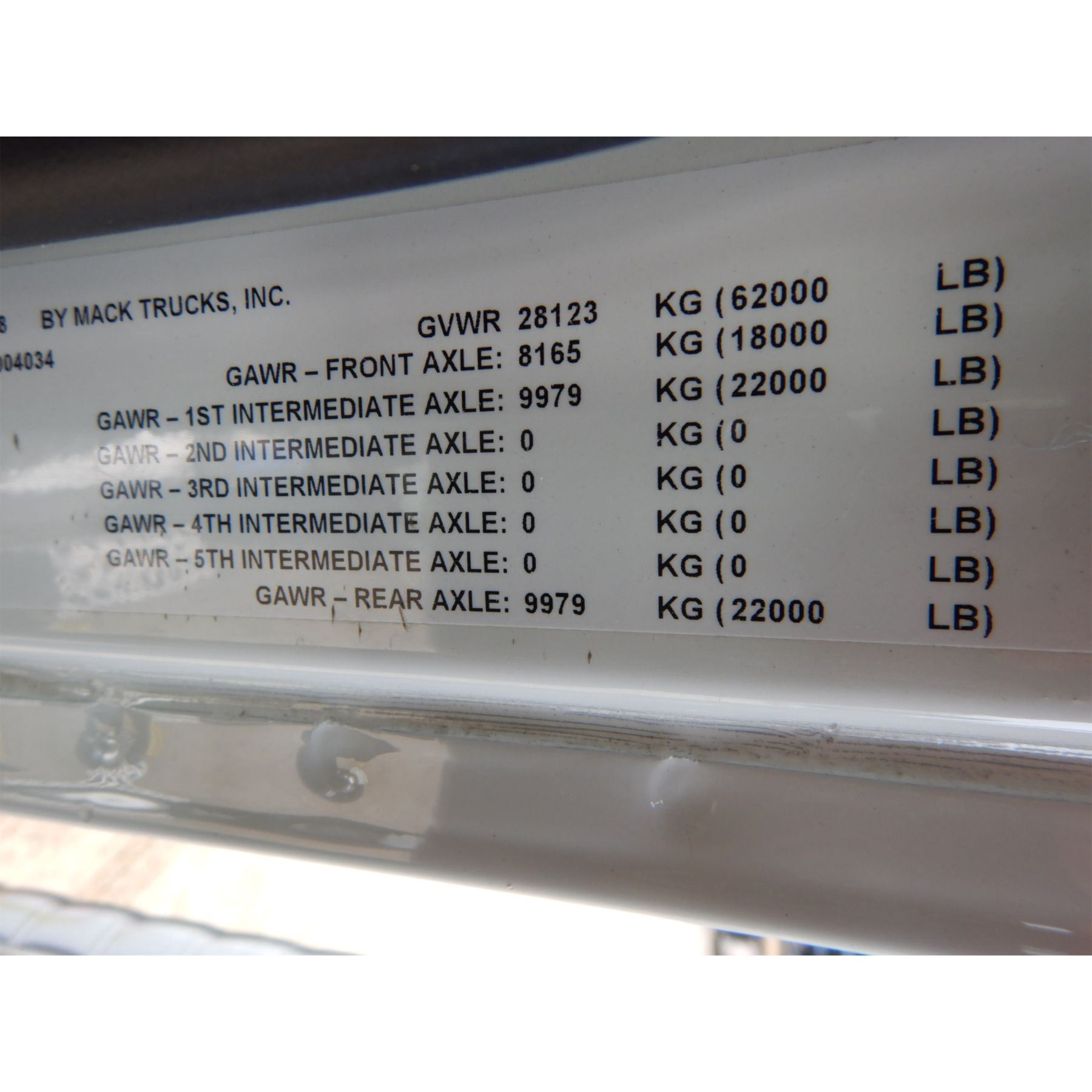 T/A, 415 HP Mack MP8 engine, Mack mDRIVE, auto shift trans, 44K rears, 18K front, Galbreath 60K hoist, 11R22.5 rear tires, 315/80R22.5 front tires, alum front, County Owned