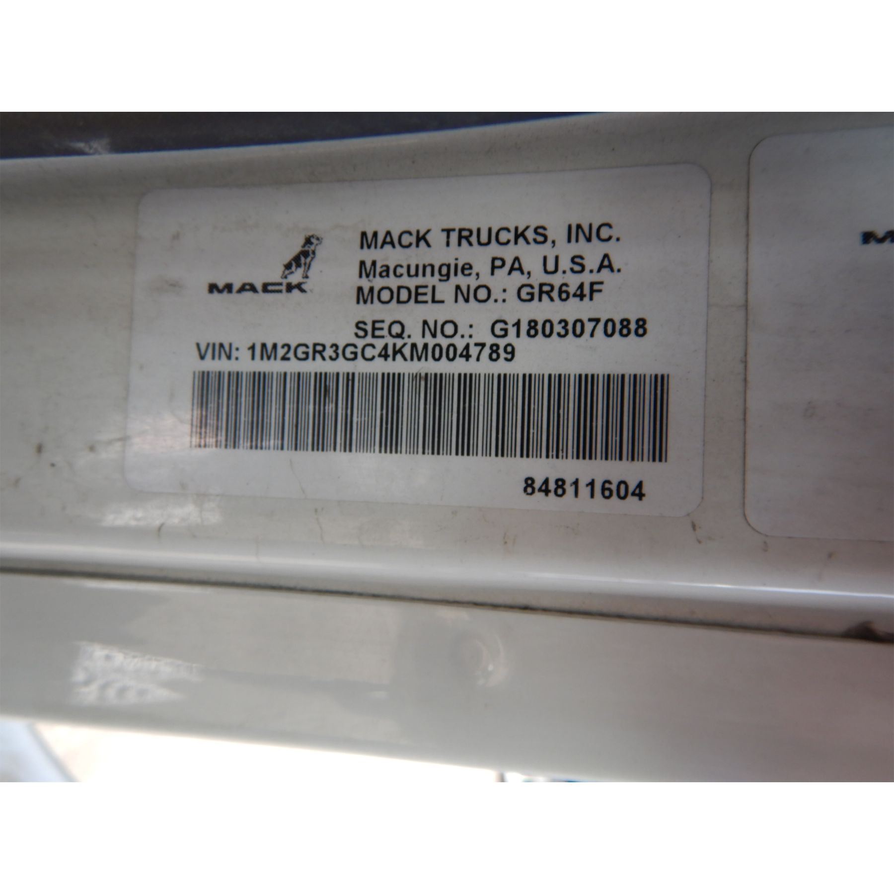 Vehicle ID Number: 1M2GR3GC4KM004789