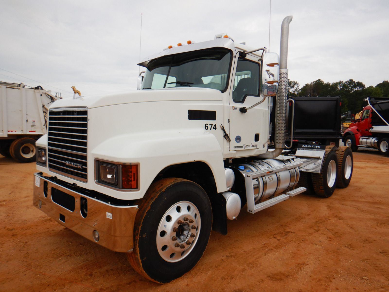 T/A, 445 HP Mack MP8 engine, Mack mDrive auto shift trans, 40K rears, air ride, 12K front, 215" W/B, wet kit, alum headache rack, 11R24.5 tires, all alum