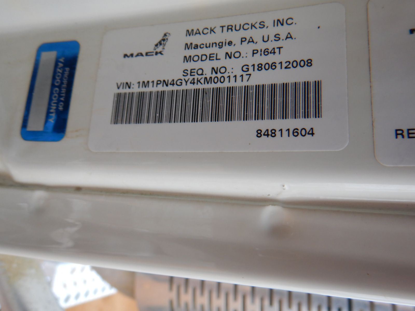 Vehicle ID Number: 1M1PN4GY4KM001117
